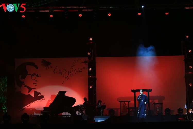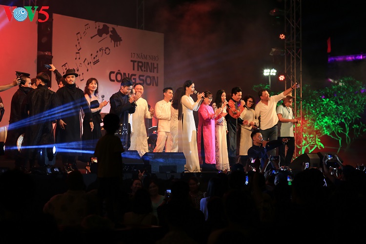 Cuối đêm nhạc, tất cả cùng hát vang ca khúc “Nối vòng tay lớn” bất hủ của cố nhạc sĩ Trịnh Công Sơn. |