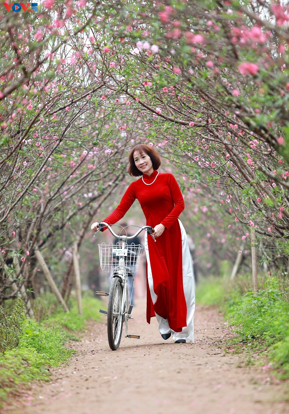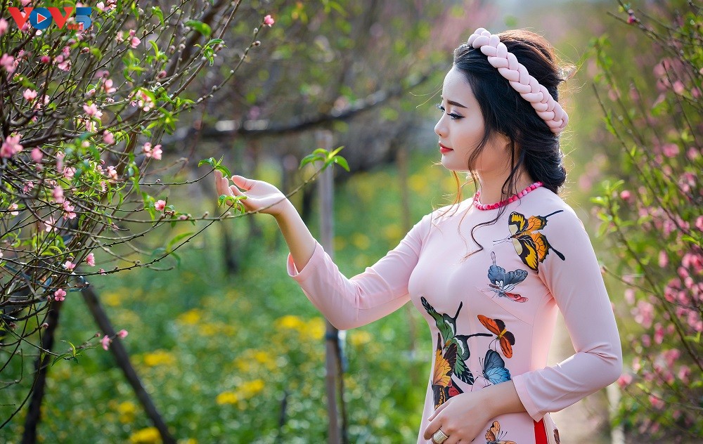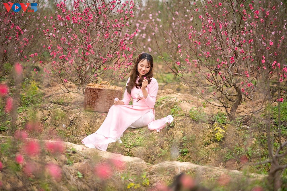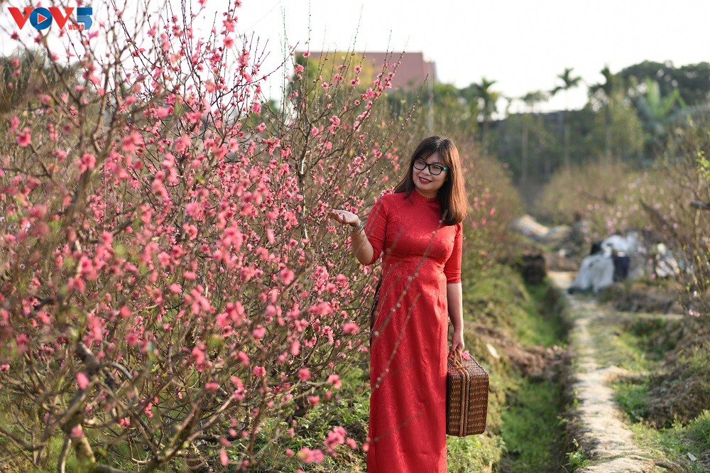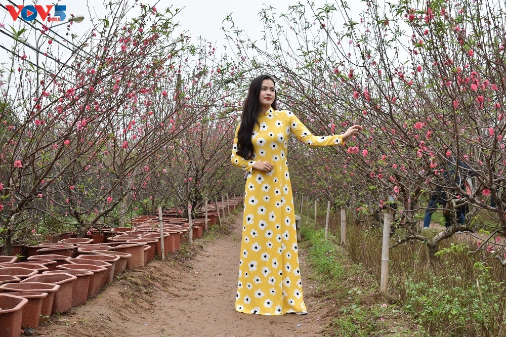 Chỉ còn vài ngày nữa là đến Tết Nguyên đán Kỷ Hợi 2019, khắp mọi nẻo đường đã ngập tràn không khí rộn ràng đón chào năm mới. Các vườn hoa ở Nhật Tân tấp nập người qua lại không chỉ để mua đào mà còn để chụp hình, ghi lại những khoảnh khắc mùa xuân trong tà áo dài truyền thống.