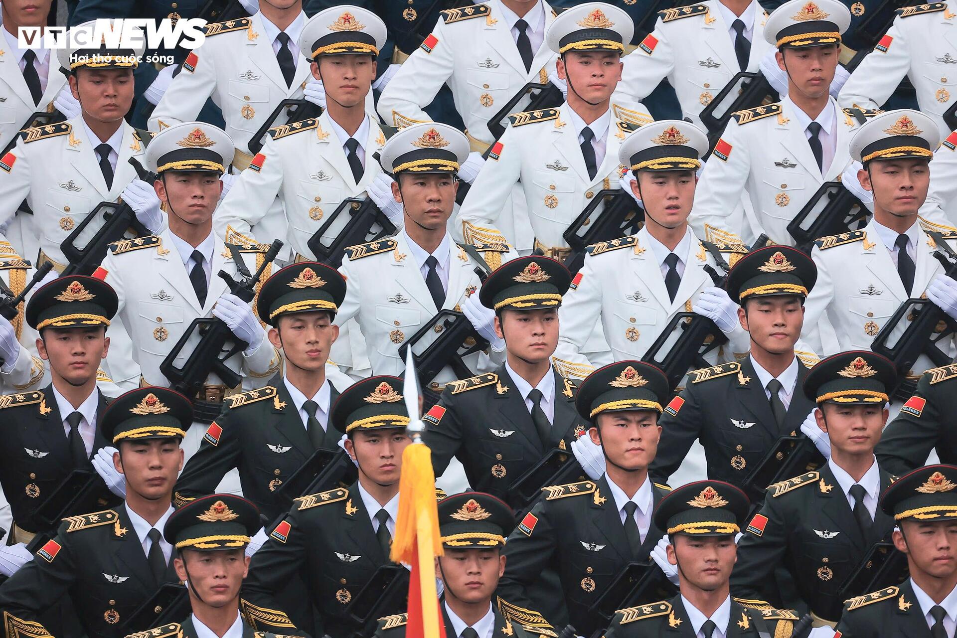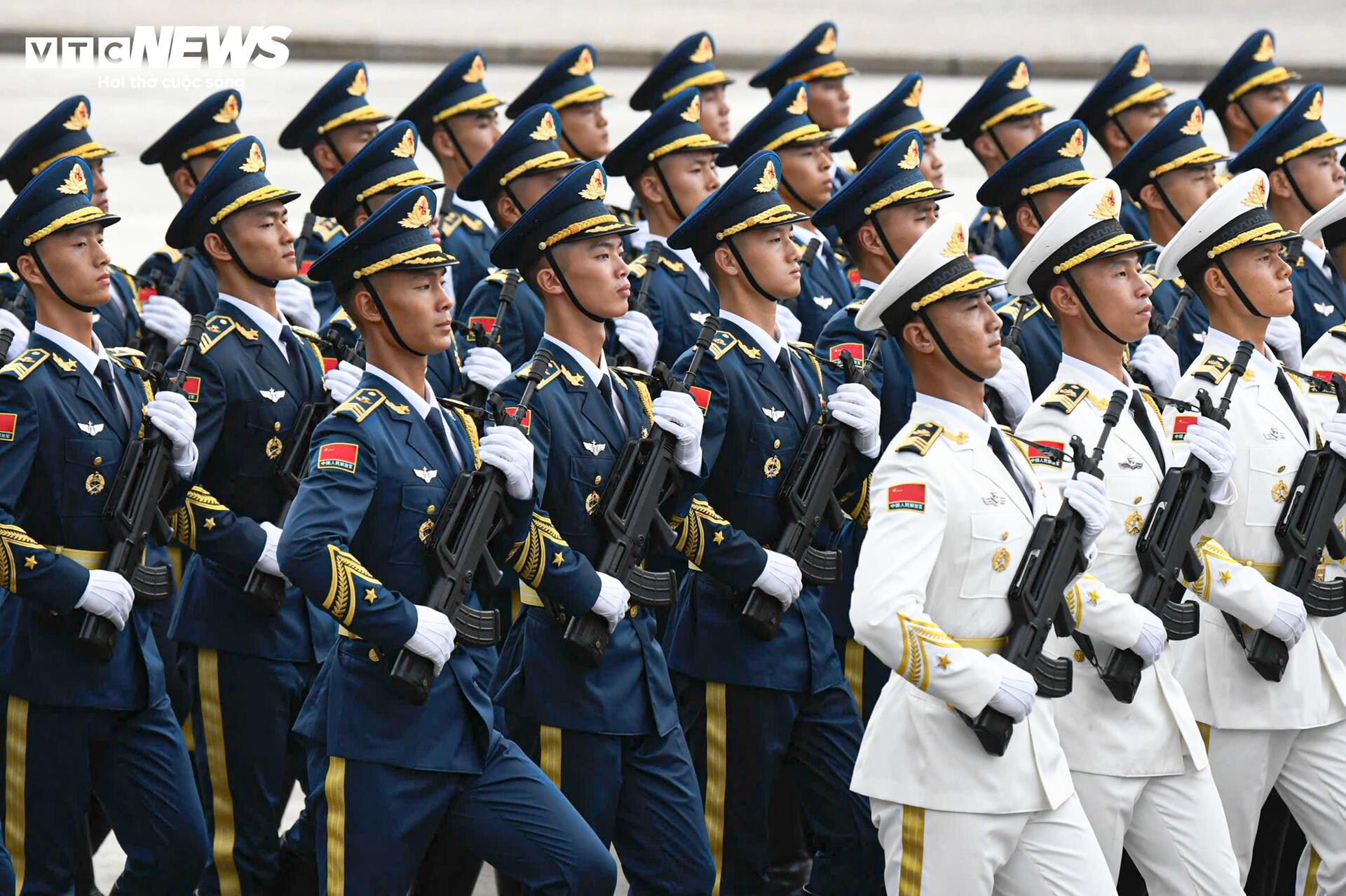 Bên cạnh đoàn Nga, Lễ kỷ niệm A80 còn có sự góp mặt của các khối quân đội Trung Quốc, Lào và Campuchia. (Trong ảnh: Khối Quân Giải phóng nhân dân Trung Quốc).