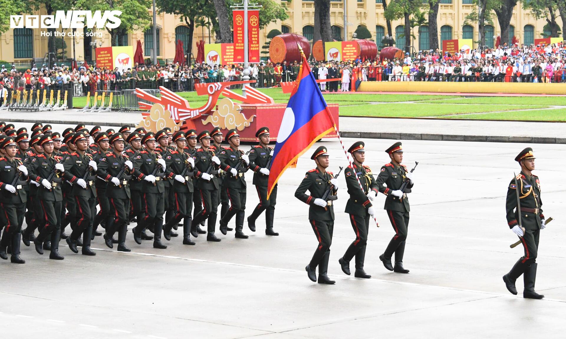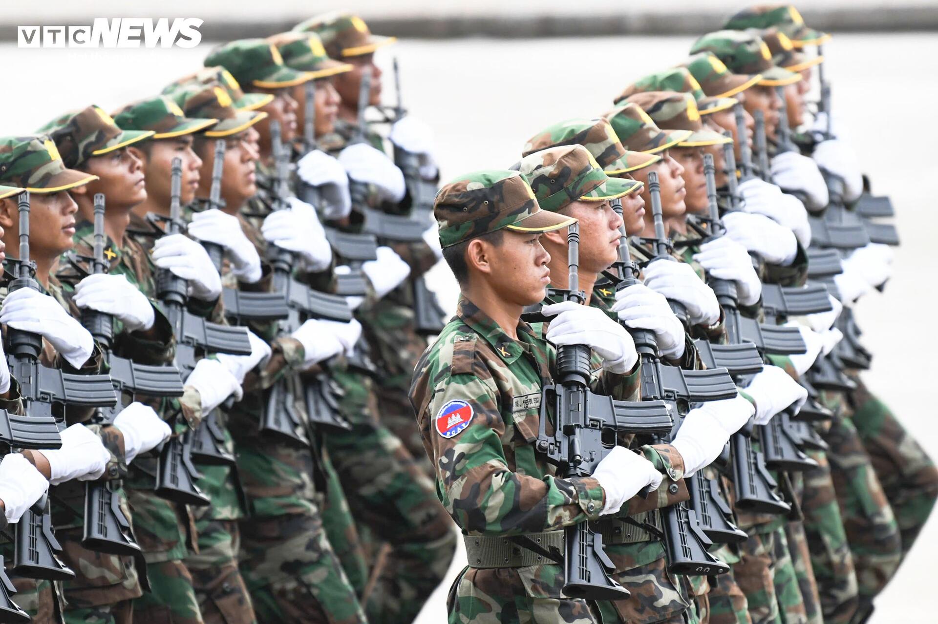 Những bước chân mạnh mẽ, dứt khoát của các chiến sĩ Quân đội nhân dân Lào gợi nhớ tình đoàn kết đặc biệt Việt – Lào, trong khi hình ảnh đội hình Quân đội Hoàng gia Campuchia trang nghiêm, đồng đều là minh chứng cho tình hữu nghị láng giềng bền chặt.