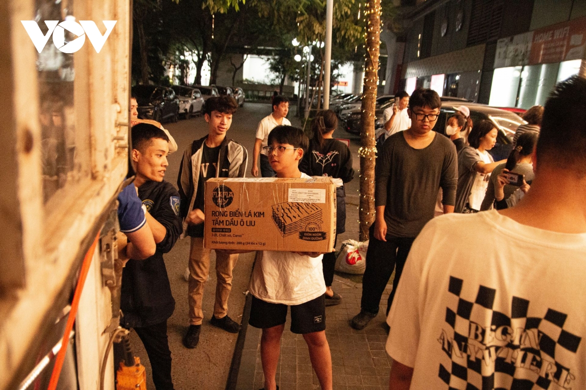 Từ người lớn tuổi đến thanh thiếu niên, ai nấy đều chung tay phụ giúp, chuyển từng món đồ được đóng gói gọn gàng lên thùng xe tải. Trưởng nhóm phát động cho biết sau gần 20 giờ kêu gọi – từ 19 giờ ngày 22/11 đến trưa 23/11, nhóm cư dân đã tiếp nhận gần 13 tấn hàng hóa, gồm đầy đủ nhu yếu phẩm như sữa, mì, cháo ăn liền, lương khô, bánh các loại, quần áo, nước uống; cùng thuốc thiết yếu như thuốc ho, cảm cúm, giảm đau, hạ sốt, bỉm và băng vệ sinh cho người già và phụ nữ.