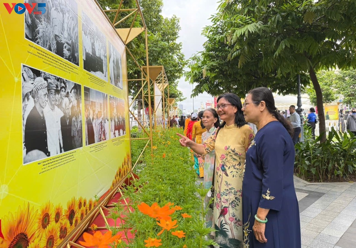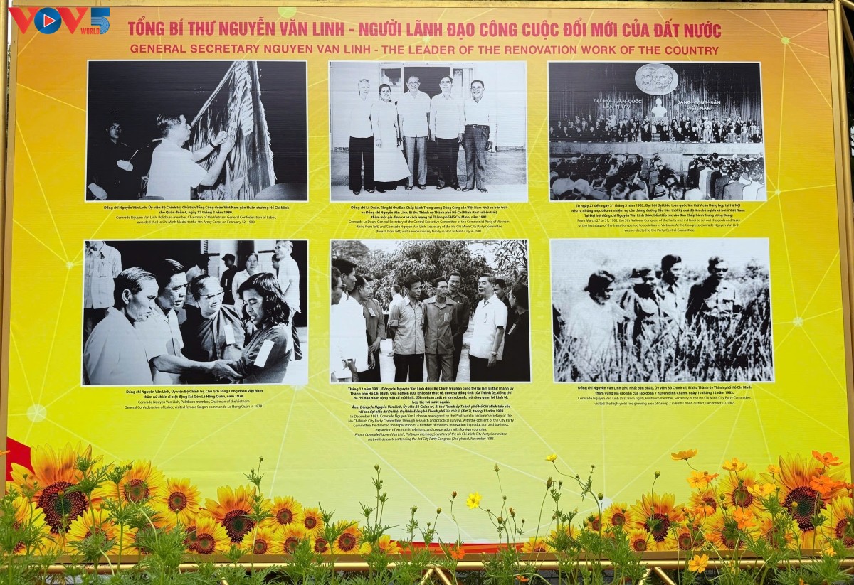 Triển lãm trưng bày 100 hình ảnh tư liệu, chia thành hai phần chính. Phần đầu khắc họa quá trình hoạt động cách mạng của Tổng Bí thư Nguyễn Văn Linh, phần sau tập trung vào vai trò lãnh đạo đổi mới đất nước của ông. Ảnh: T.H/VOV-TP. Hồ Chí Minh |