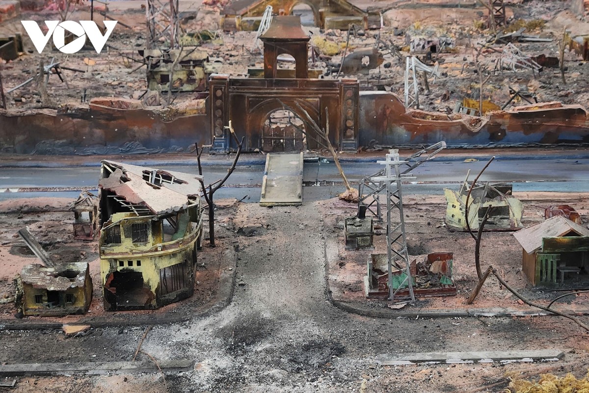 Không chỉ là không gian tri ân, “Mưa đỏ – Tri ân từ khuôn hình” còn là nơi kết nối quá khứ và hiện tại, nơi những người trẻ – như các diễn viên hóa thân thành “Tiểu đội 1” – được sống lại trong thời khắc hào hùng của cha anh. (Trong ảnh: Sa bàn mô phỏng phim trường "Mưa đỏ". Ảnh: Hà Phương/VOV) |