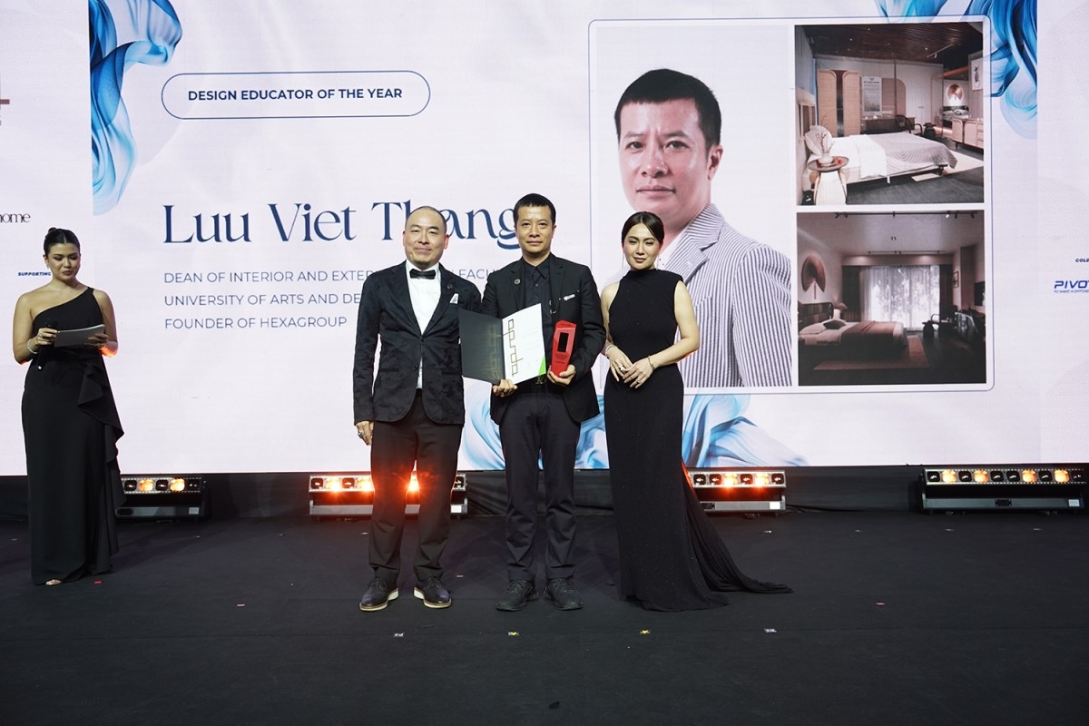 TS. Nhà thiết kế Lưu Việt Thắng - Trưởng khoa Thiết kế Nội - Ngoại thất, Trường Đại học Mỹ thuật Công nghiệp - là đại diện duy nhất đến từ Việt Nam, xuất sắc được trao tặng danh hiệu "Design Educator of the Year" (Giải thưởng dành cho Nhà hoạt động giáo dục trong lĩnh vực thiết kế của năm). Ảnh: Ban tổ chức |