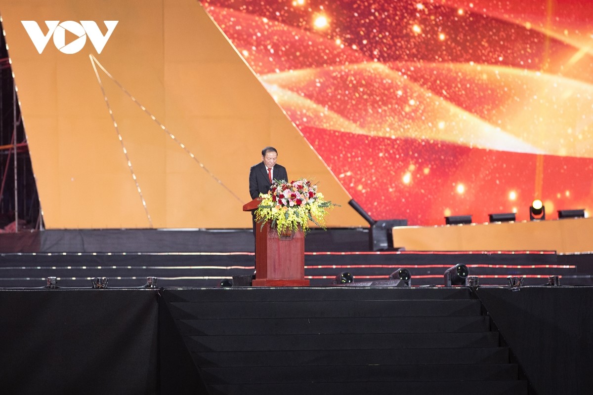 Phát biểu khai mạc, Bộ trưởng Bộ Văn hóa, Thể thao và Du lịch Nguyễn Văn Hùng nhấn mạnh: “80 năm qua, văn hóa nghệ thuật đã song hành cùng dân tộc, tạo mạch nguồn nuôi dưỡng tâm hồn, sức mạnh, tinh thần và ý chí Việt Nam. Chương trình nghệ thuật đặc biệt này không chỉ trình diễn các tác phẩm âm nhạc, múa, thơ ca, mà còn là lời tri ân sâu sắc gửi tới các thế hệ cha anh đã hy sinh cho độc lập, tự do của Tổ quốc”. |