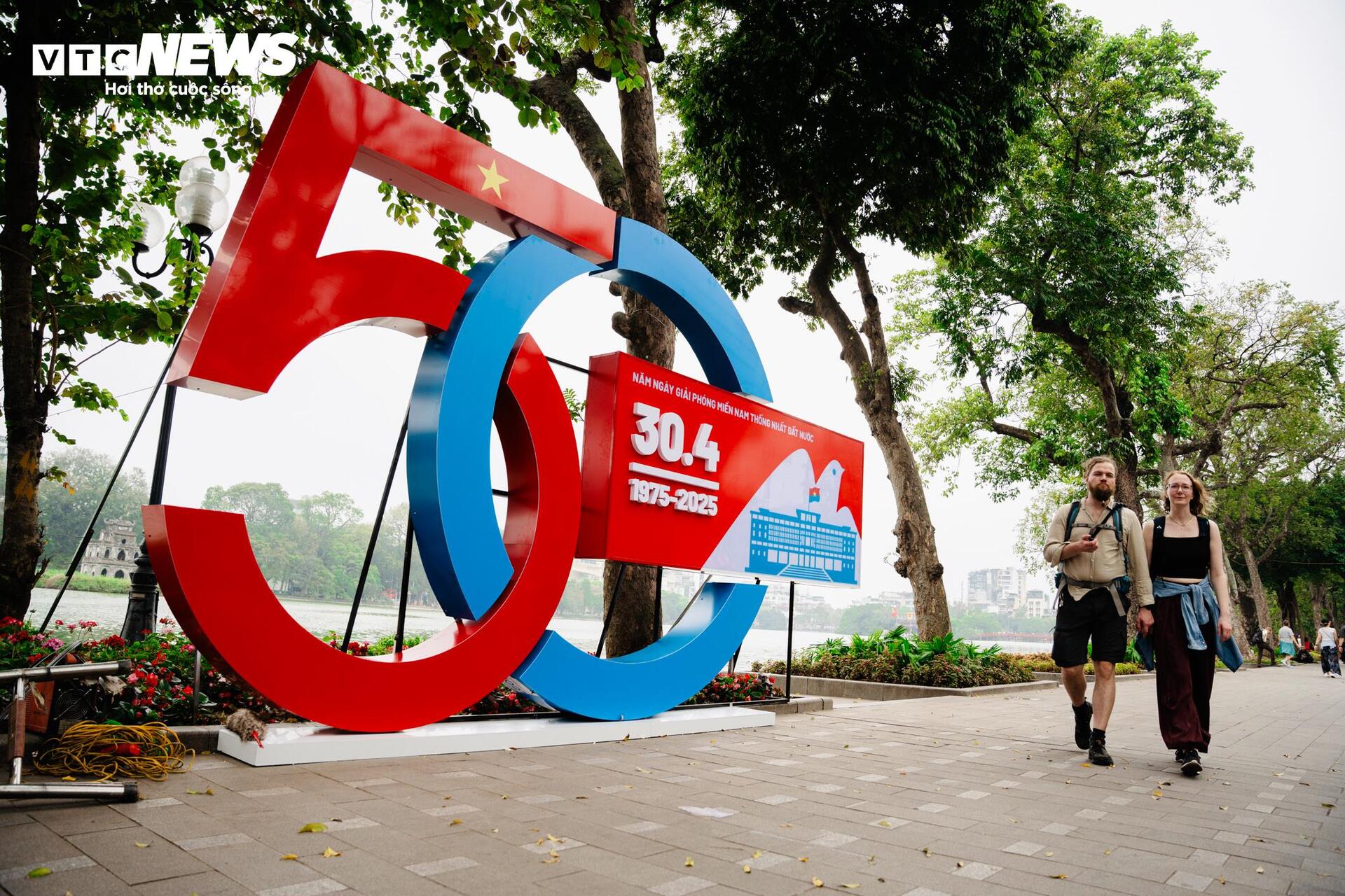 Những ngày cuối tháng Tư, không khí chuẩn bị cho lễ kỷ niệm 50 năm Ngày Giải phóng miền Nam, thống nhất đất nước tràn ngập khắp các tuyến phố của Hà Nội. Trên các trục đường lớn như Điện Biên Phủ, Tràng Thi, Kim Mã, Láng Hạ, Đại Cồ Việt..., những dãy cờ đỏ sao vàng được treo dọc hai bên đường, xen kẽ là các khẩu hiệu, pa-nô rực rỡ cổ vũ tinh thần yêu nước, khơi gợi lòng tự hào dân tộc.