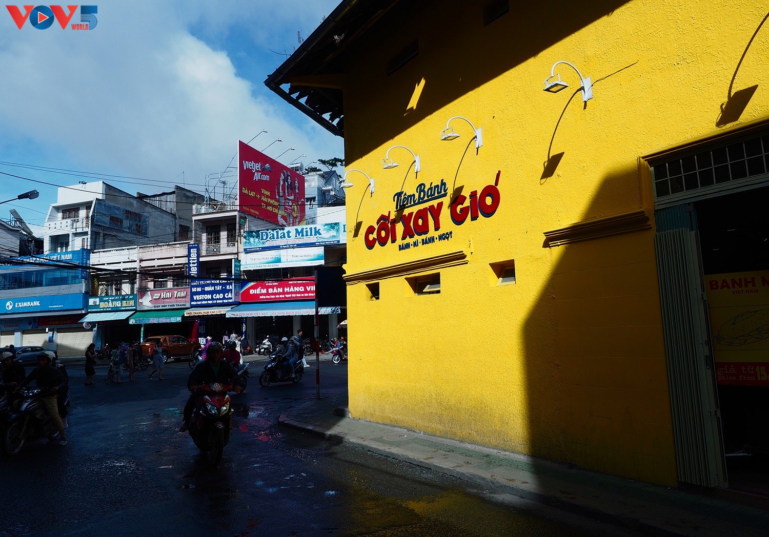 Trên thực tế, bức tường Cối Xay Gió vốn không phải nơi chụp hình mà là một tiệm bánh nhỏ nằm ở đường Hòa Bình. Mặt tiền của tiệm được chủ quán sơn màu vàng mù tạt nổi bật, đi kèm là dòng chữ tên quán vẽ theo phong cách retro những năm 90.