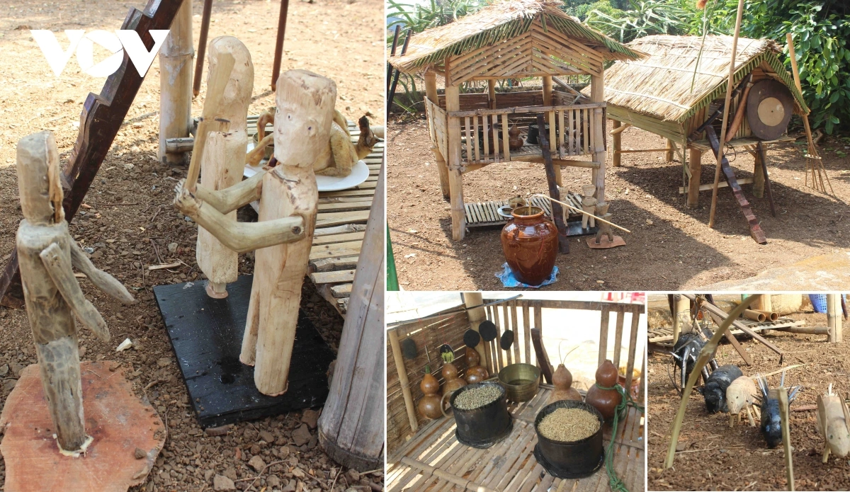 | Khu vực làm lễ cúng đã được chuẩn bị từ trước đó vài ngày. Buôn trưởng cùng các thanh niên trai tráng lựa chọn một khoảng đất rộng bằng phẳng, dọn dẹp sạch sẽ, rào quanh thành một khoảnh rẫy. Họ cùng nhau dựng 2 căn chòi: một căn để thờ thần trời và các thần linh, trong đó sắp xếp những vật quý như chiêng, trống, gươm giáo. Một căn là kho chứa lúa và các loại nông sản, dụng cụ làm nương rẫy như: Xà gạc, gùi đựng lúa giống, dụng cụ để chọc lỗ gieo lúa. Vào ngày diễn ra lễ cúng, con vật hiến sinh (thường là gà hoặc heo) sẽ được làm thịt, dùng để dâng lên các thần. Người ta lấy đầu gà cắm lên phía trên căn chòi trước khi làm lễ. |