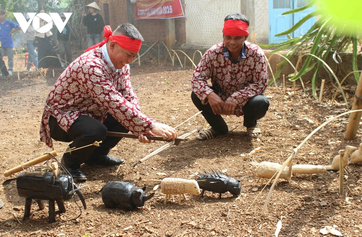 | Ở một góc khác, các thanh niên sẽ đi quanh rẫy, dùng cung tên để săn bắn, xua đuổi các loài thú phá hoại mùa màng. |