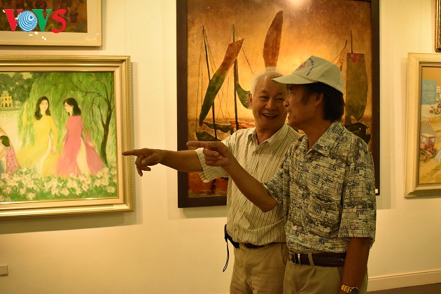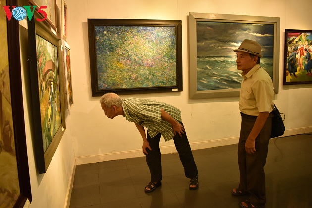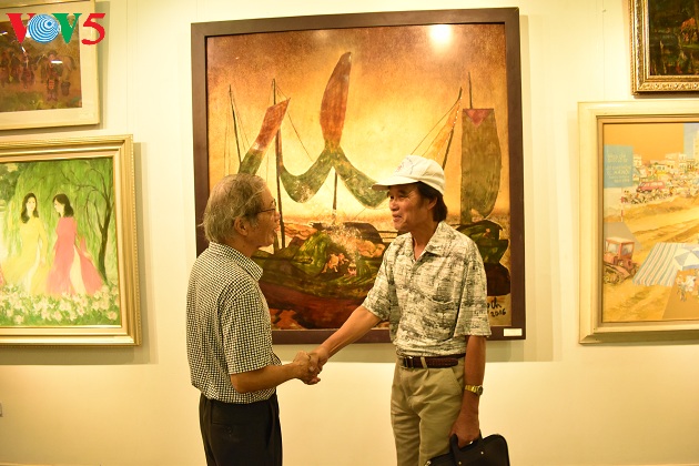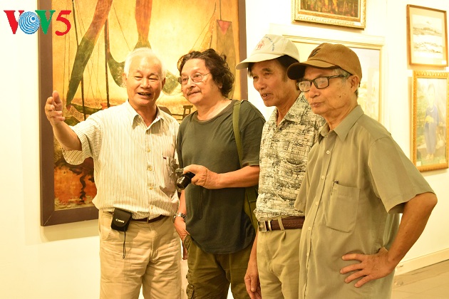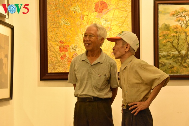 Triển lãm còn là dịp các họa sĩ cao niên gặp nhau, trò chuyện, bàn luận về những tác phẩm của mình cũng như đồng nghiệp.
