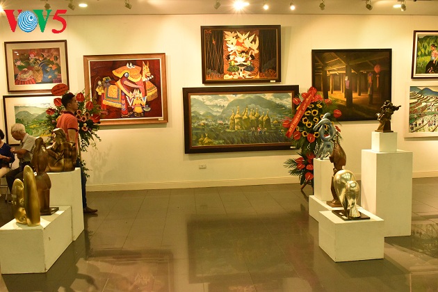 Các tác phẩm với nhiều thể loại hội họa, đồ họa, điêu khắc...mang dấu ấn riêng của từng tác giả thu hút người xem.