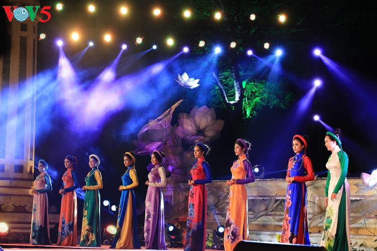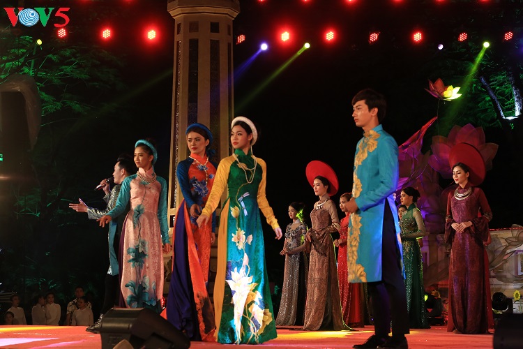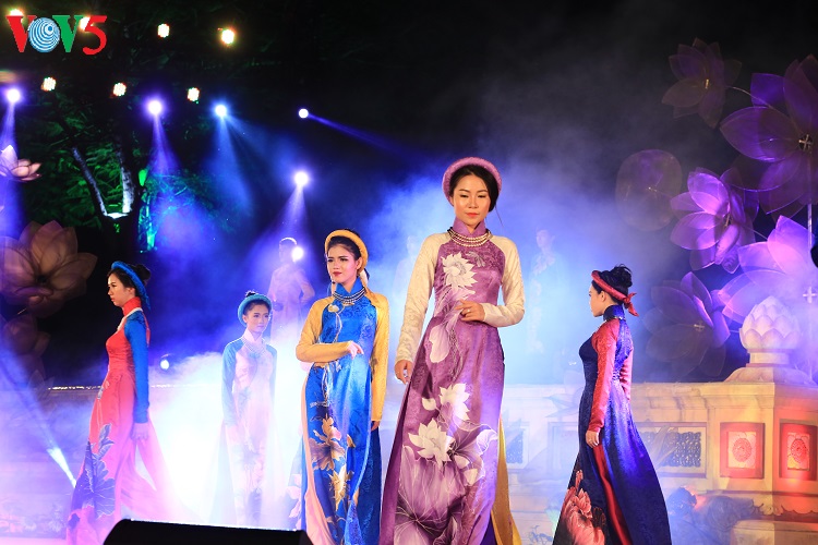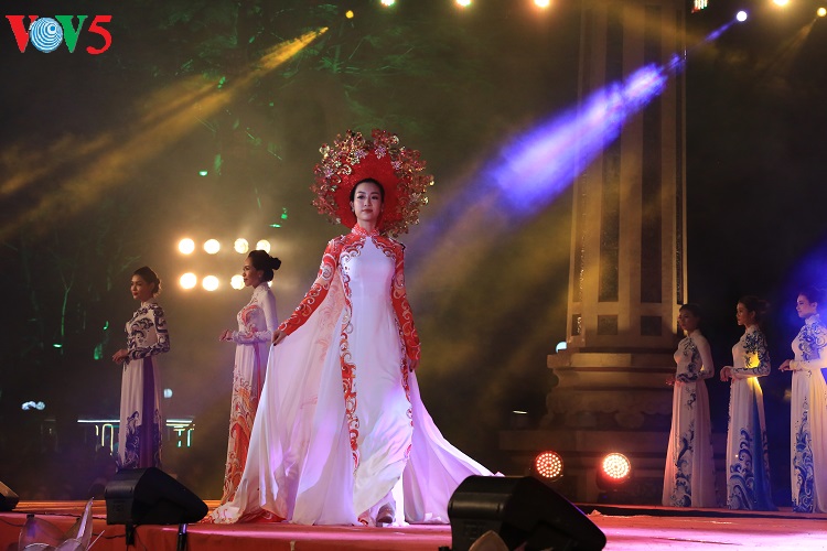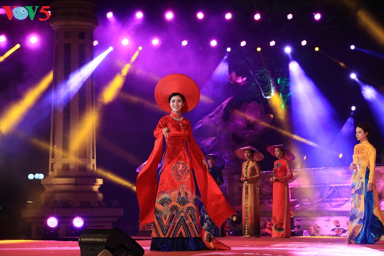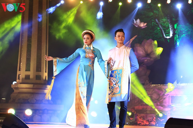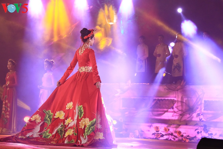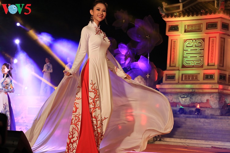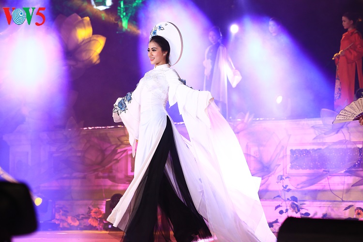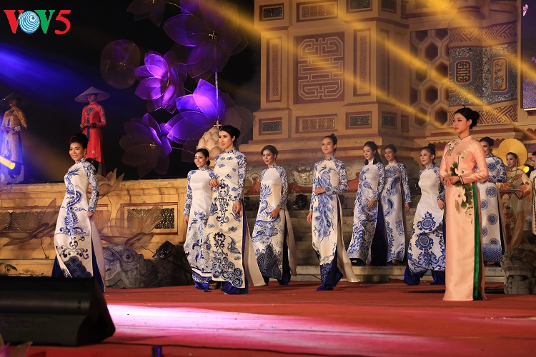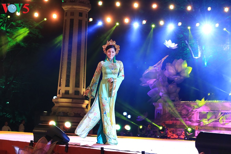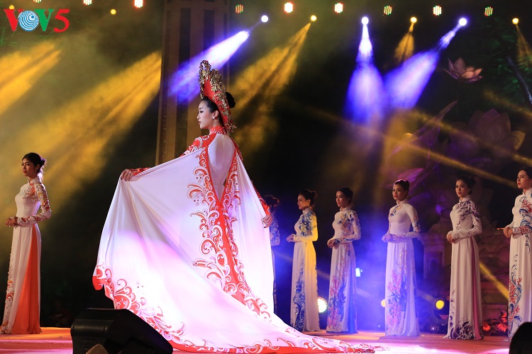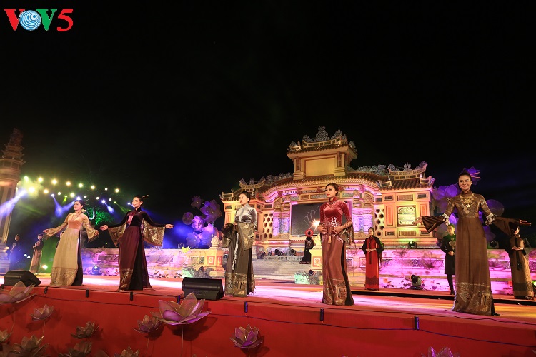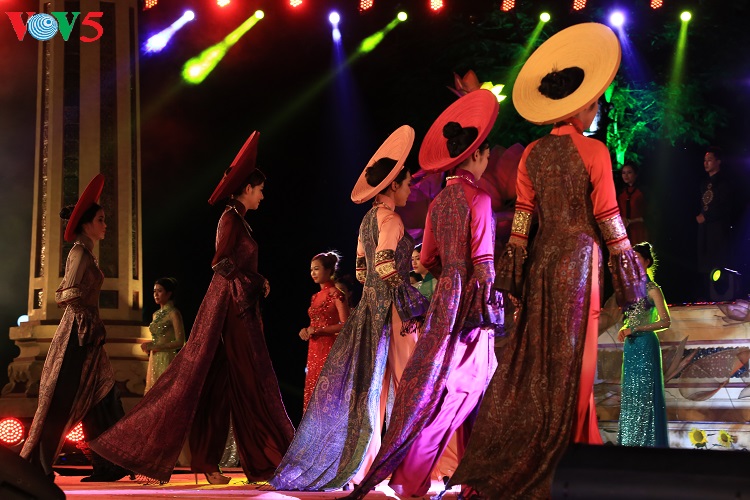 Đêm trình diễn “Huế Vàng Son” đưa khán giả trở về với nền văn hóa áo dài xưa và nay với hơn 300 mẫu áo dài tinh tế. |