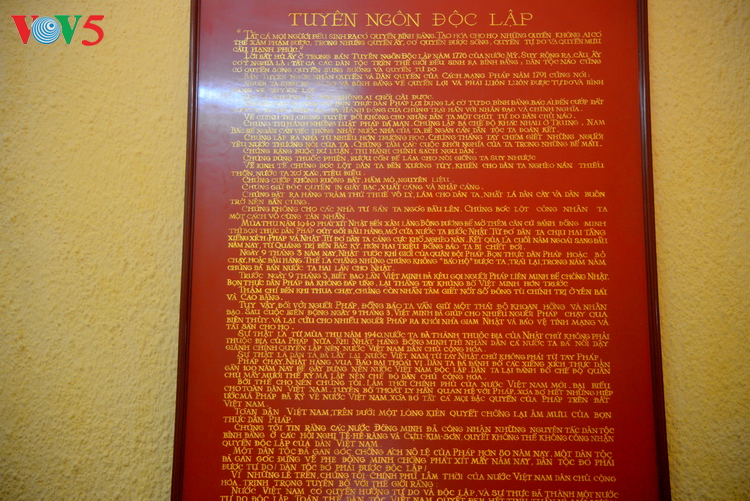 | Tại đây, Chủ tịch Hồ Chí Minh đã viết và cùng các cán bộ Trung ương Đảng thông qua nội dung bản Tuyên ngôn Độc lập khai sinh ra nước Việt Nam Dân chủ Cộng hòa. |