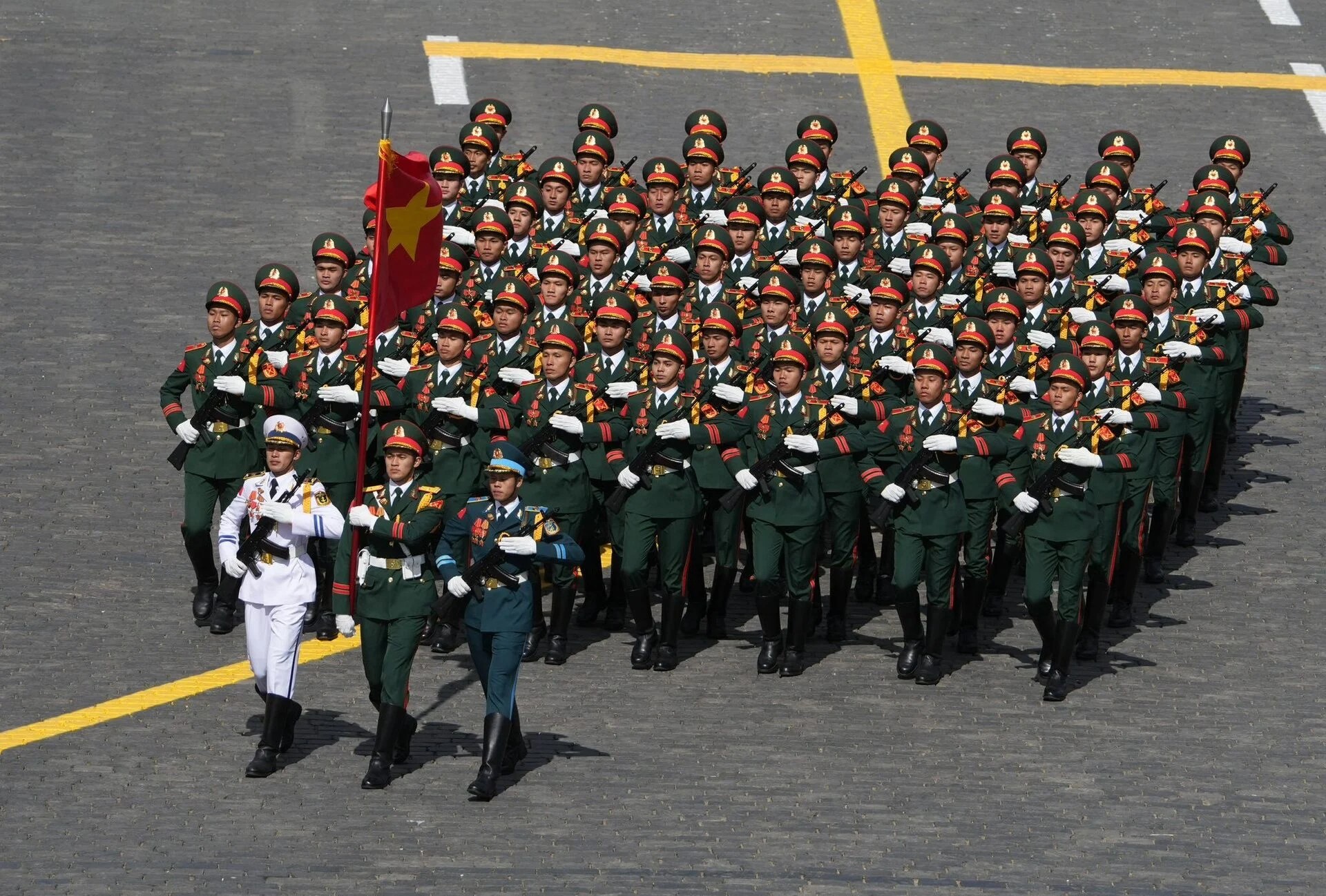 Đây là lần đầu tiên Việt Nam cử lực lượng quân sự chính thức tham gia Lễ duyệt binh kỷ niệm Ngày Chiến thắng phát xít tại Moskva, Nga. Ảnh: RIA Novosti |