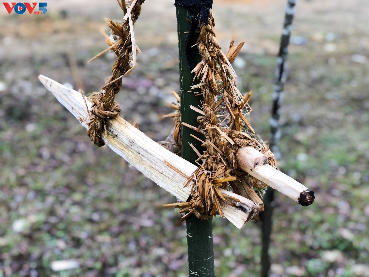 Dân bản đến vị trí bàn thờ thần rừng hành lễ cầu xin thần rừng che chở cho cả thôn bản.