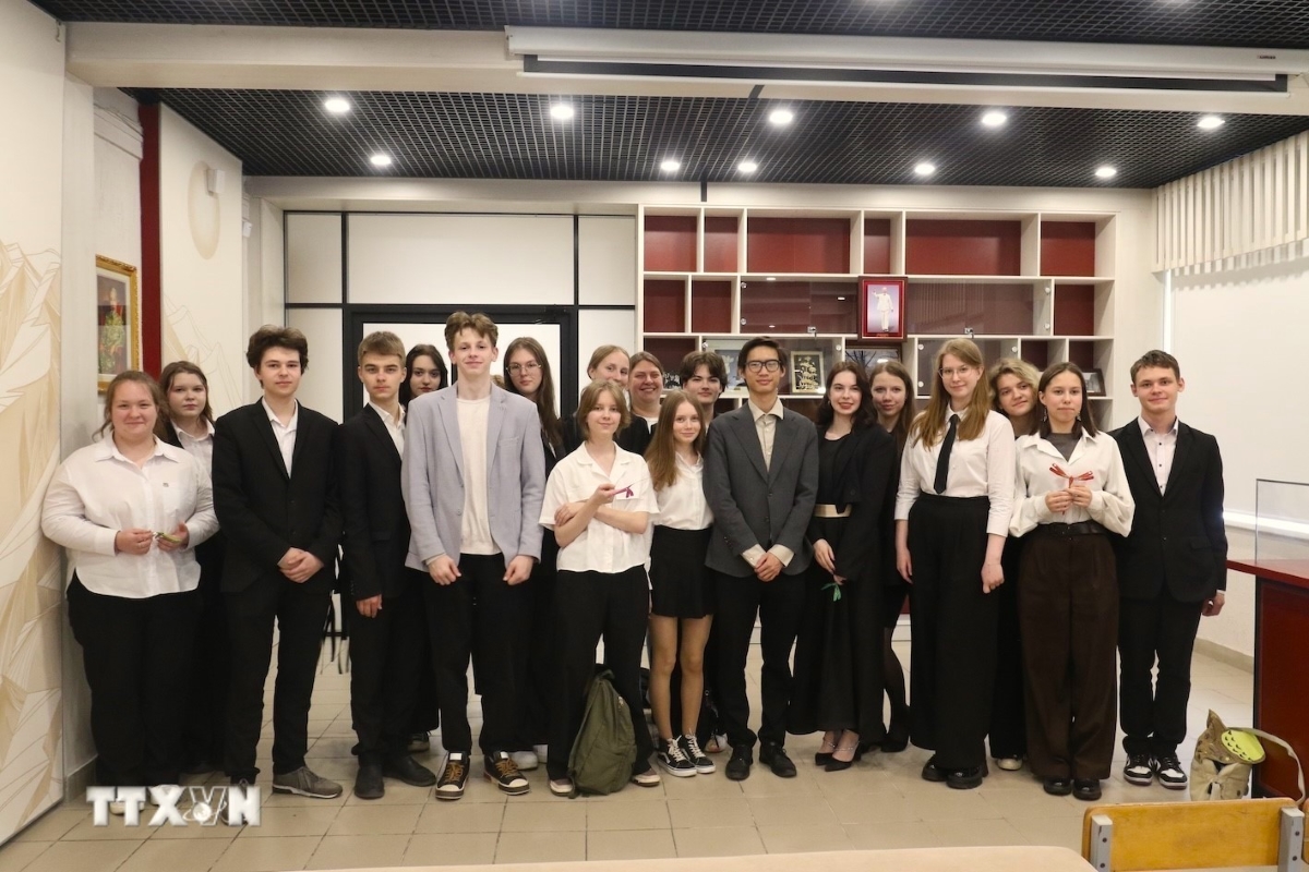 Học sinh Nga tham gia tiết học về con đường hoạt động cách mạng của Chủ tịch Hồ Chí Minh. Ảnh: Quang Vinh/TTXVN |