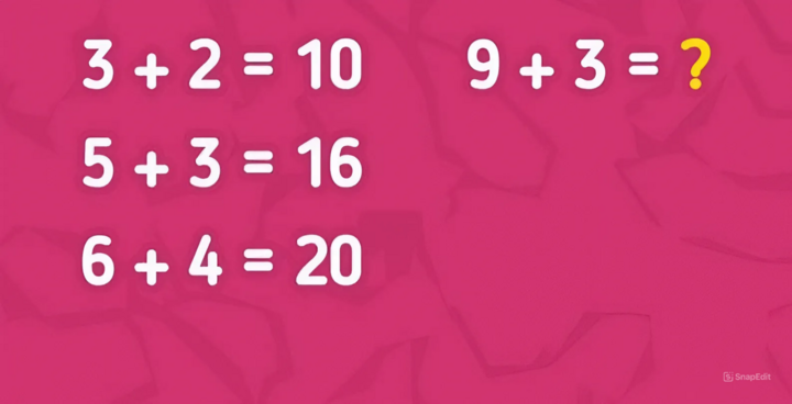 yêu cầu bạn hãy tìm ra quy luật trong các phép tính này, từ đó suy luận tìm ra đáp án của 9 + 3 = ?. Bạn hãy thử sức xem IQ của bản thân cao tới mức nào.