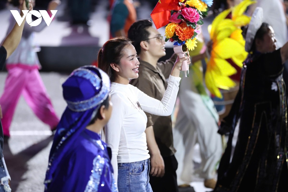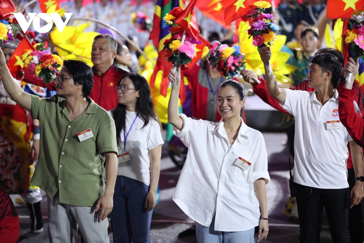 Bên cạnh các hoa hậu còn có các nghệ sĩ, diễn viên tên tuổi khác cũng góp mặt trong khối diễu hành Văn hoá thể thao như diễn viên Lâm Vỹ Dạ, Tiến Luật, MC Vũ Mạnh Cường,… |