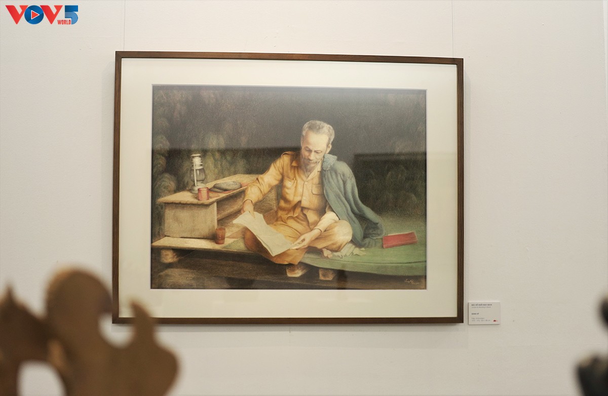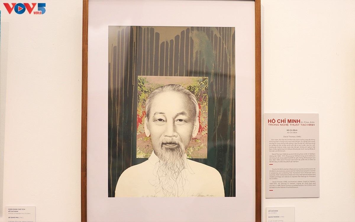 Chủ tịch Hồ Chí Minh có ảnh hưởng lớn không chỉ ở trong nước mà còn truyền cảm hứng sâu rộng tới nhiều quốc gia. Nhiều nghệ sĩ tạo hình thế giới cũng sáng tác tranh, tượng để bày tỏ tình cảm với Bác Hồ. Trong số những tác phẩm đang trưng bày tại triển lãm là hai tác phẩm chân dung sống động của Chủ tịch Hồ Chí Minh do hai nghệ sĩ nước ngoài thể hiện: David Thomas (Mỹ) và Lee Sang Phil (Hàn Quốc).