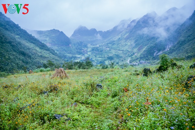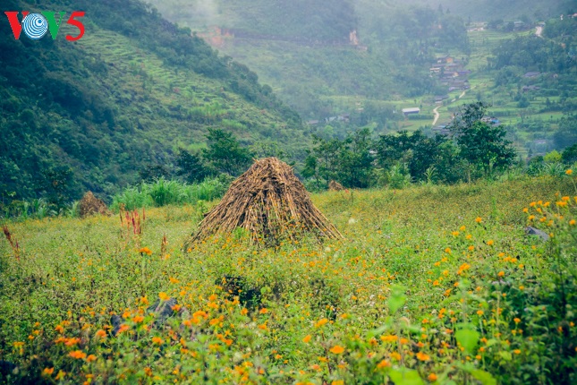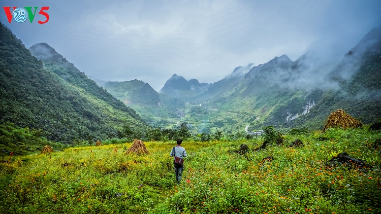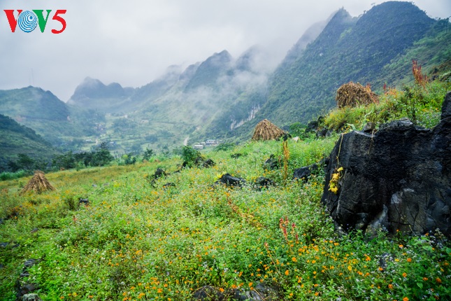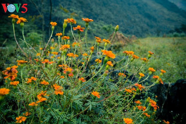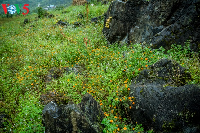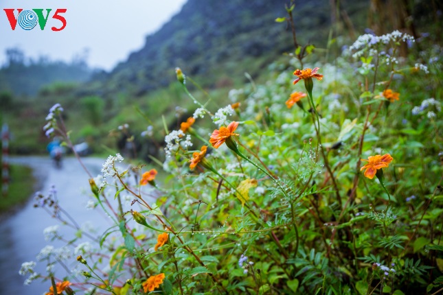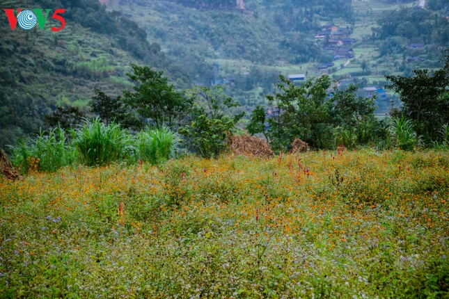 (VOV5) - Nếu Hà Nội đón gió đông se sẽ lạnh bằng vẻ đẹp tinh khôi, trong trắng, thanh khiết của cúc họa mi thì vùng cao nguyên đá Đồng Văn – Hà Giang, đón cái lạnh về bằng sắc vàng thắm, mộc mạc của loài cúc dại. Gối ngay sau mùa hoa tam giác mạch, hoa cúc dại không rực rỡ phô trương nhưng luôn để lại những vương vấn như một nét duyên ngầm của vùng cao nguyên đá. Loài hoa cúc dại e ấp, dịu dàng, đằm thắm níu giữ tâm hồn, những bước chân của người lữ khách yêu thiên nhiên, muốn đi chậm, nhìn kỹ, ngắm lâu và cảm sâu nét đẹp của vùng đất này.
