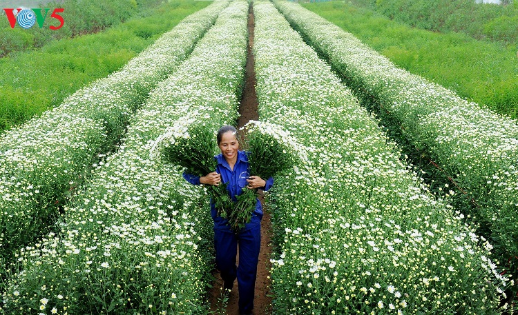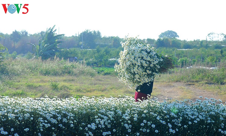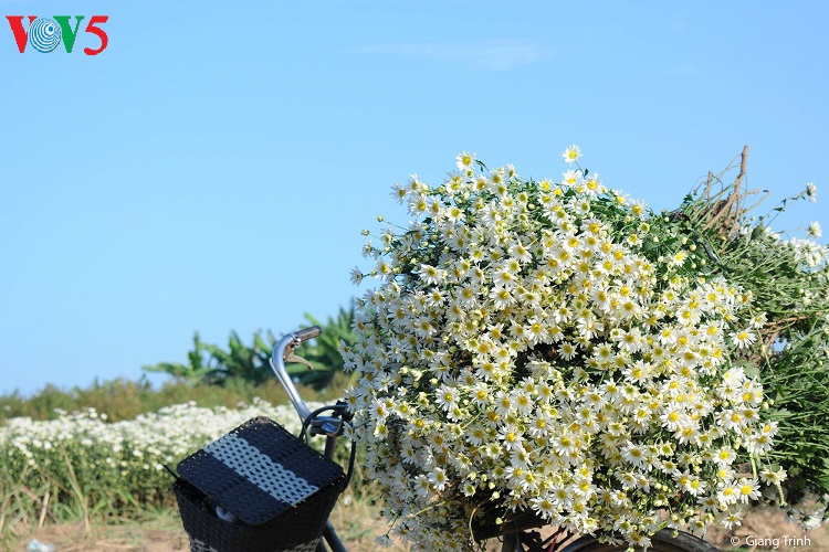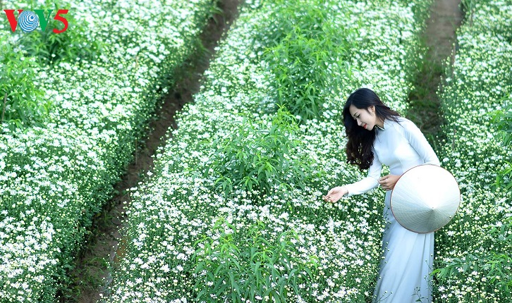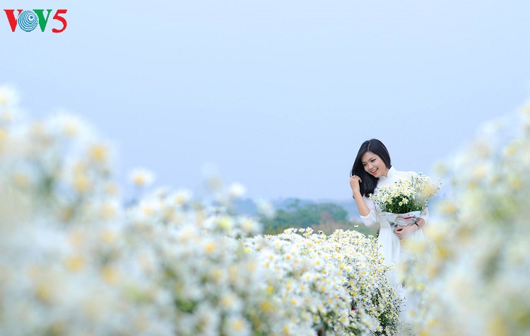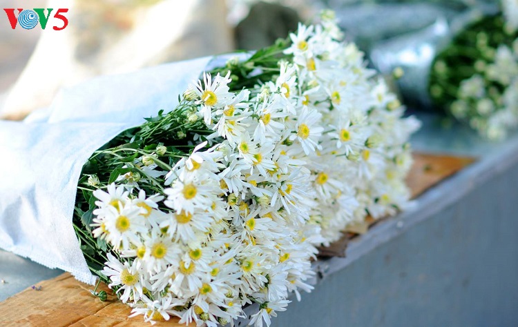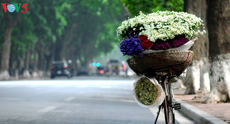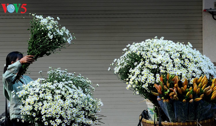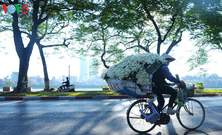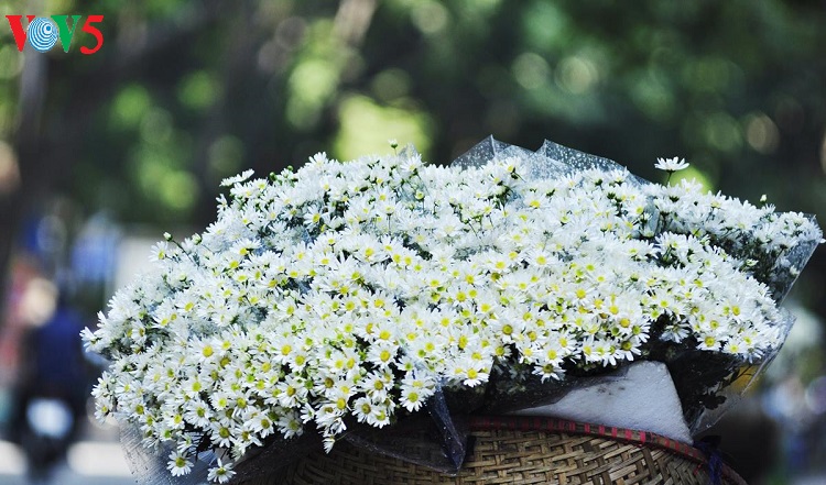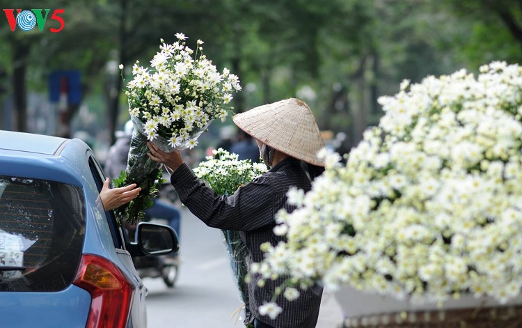 Những con phố vốn nhộn nhịp bỗng trở nên dịu dàng với những bó cúc nhỏ được nâng niu trên tay các thiếu nữ trong tà áo dài truyền thống. |
