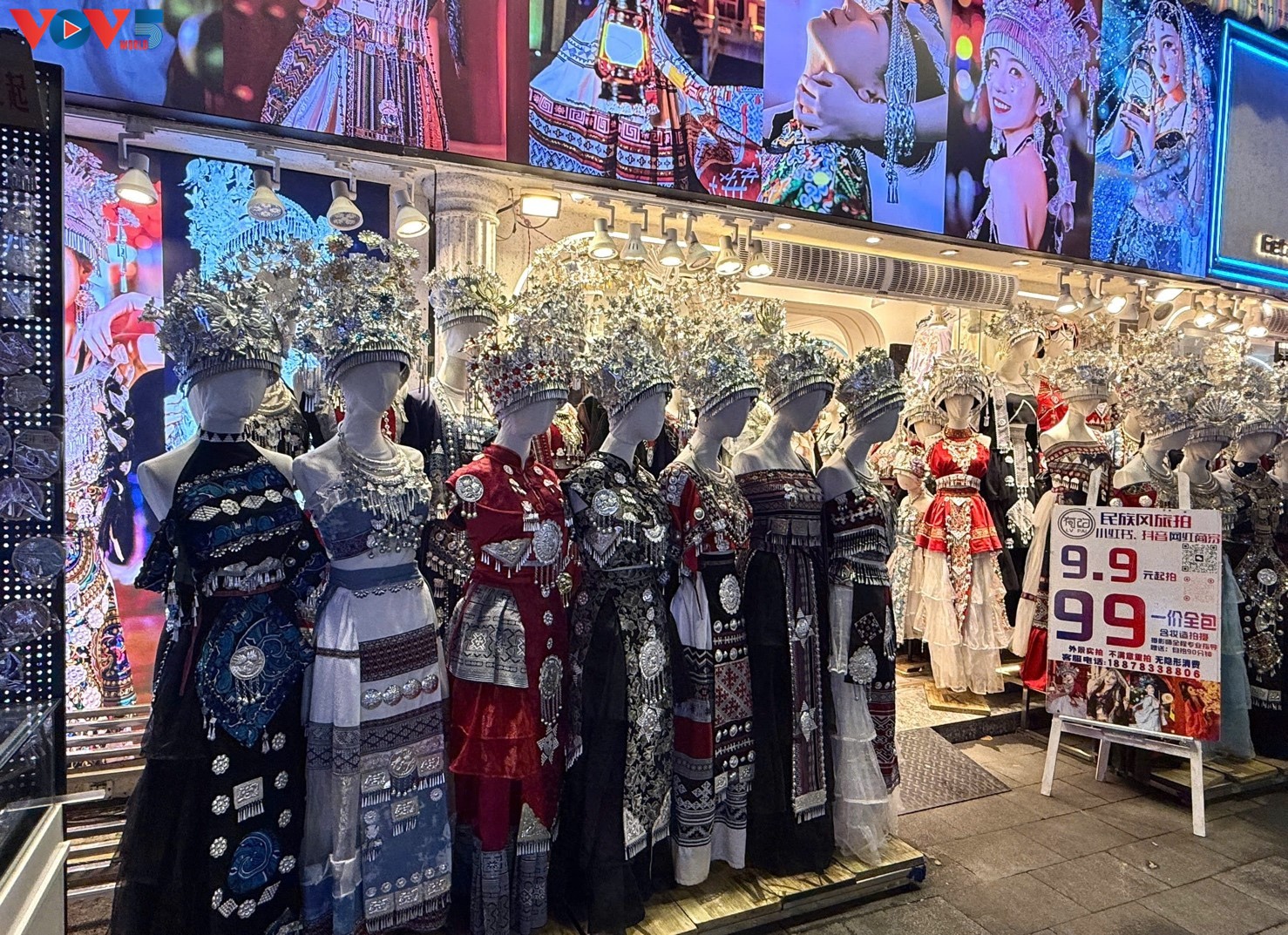 Nơi đây bày bán nhiều trang phục truyền thống dân tộc ở Trung Quốc