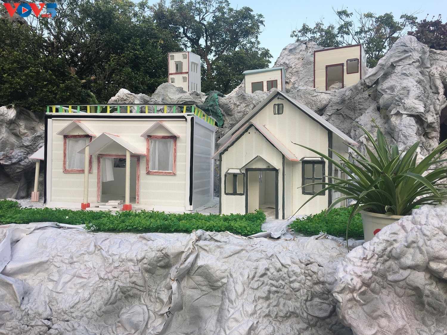Núi đá, các ngôi nhà mô hình tái hiện cảnh sống thời Chúa Giê-su cách đây hơn 2.000 năm.