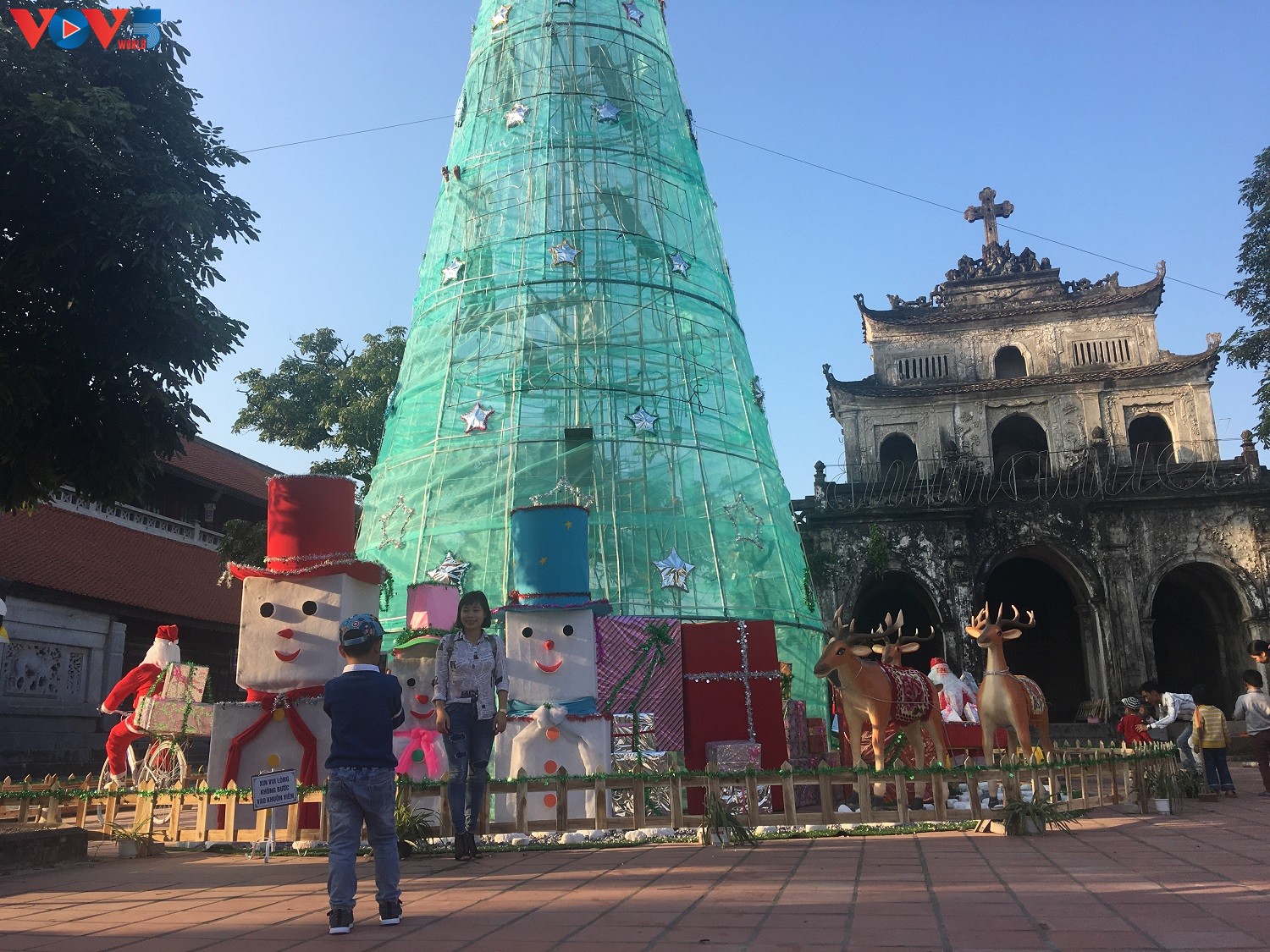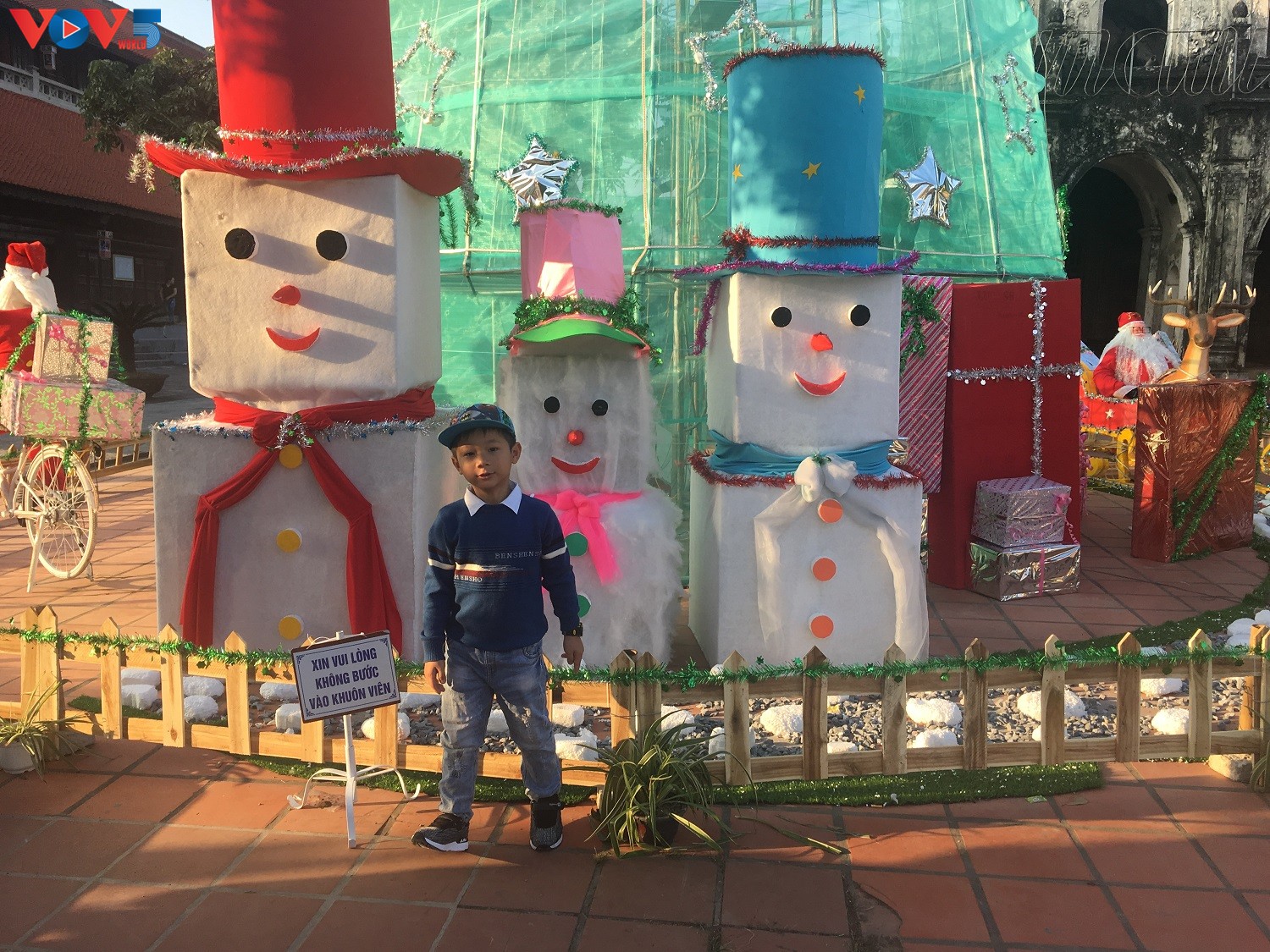 Mô hình người tuyết khổng lồ cũng được trang khí khắp nơi ở Phát Diệm, tạo nên khung cảnh một ngày lễ Noel thực sự.