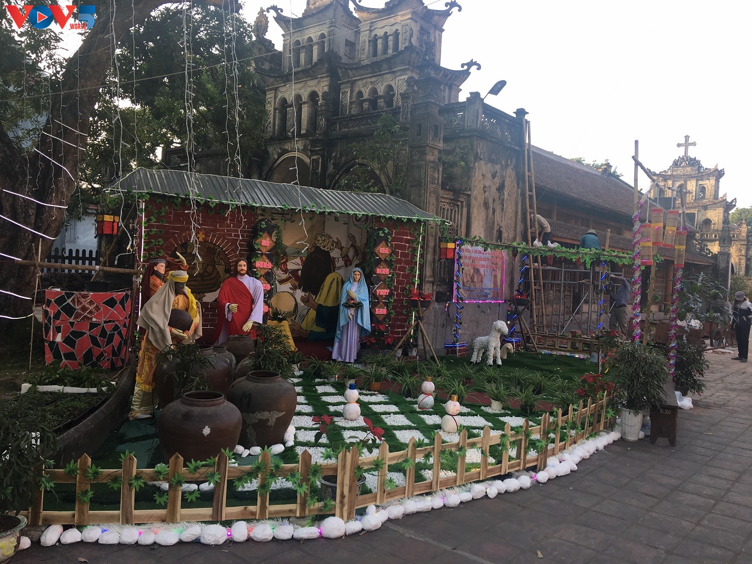Công tác trang hoàng cho Nhà thờ Đá Phát Diệm để đón Giáng sinh đang tất bật được hoàn thiện.