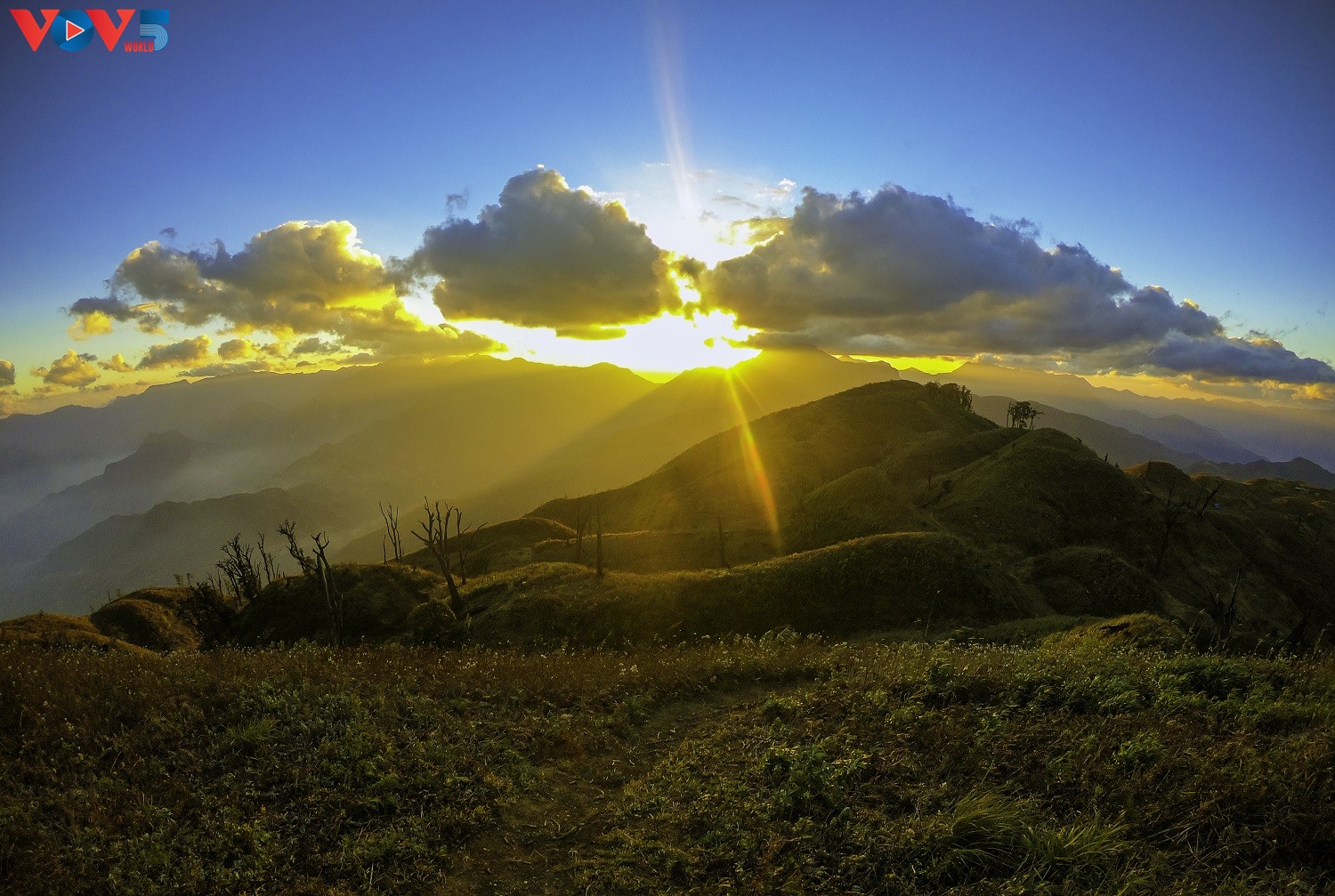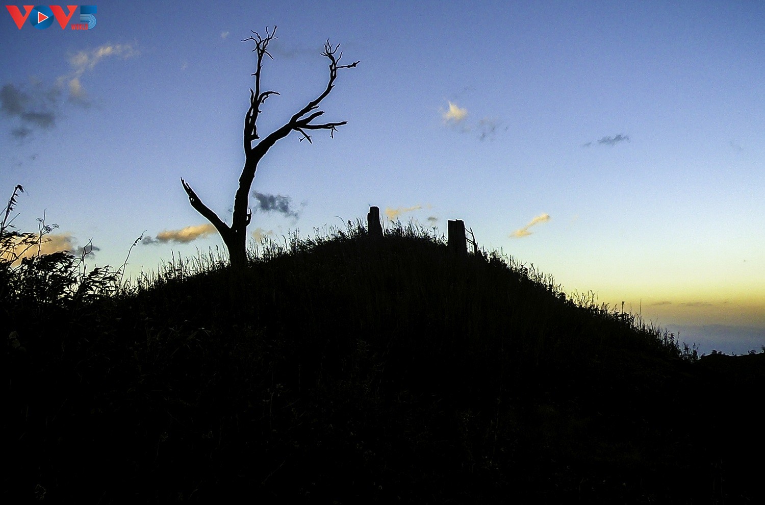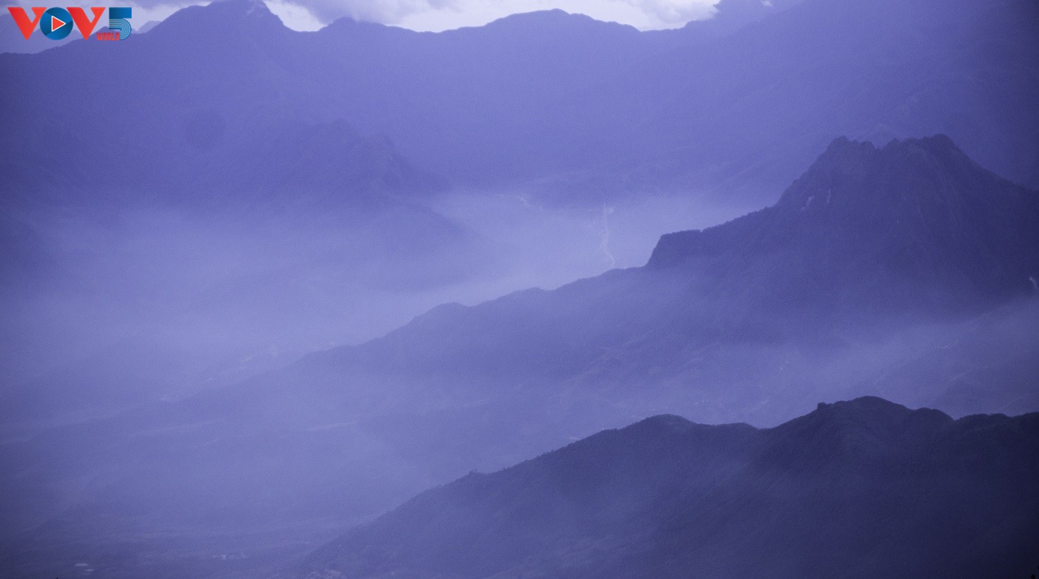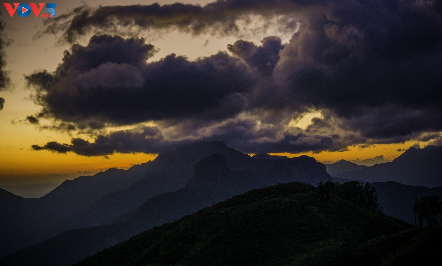 Khoảnh khắc cuối ngày luôn là sự thăng hoa của vẻ đẹp hoàng hôn. Chiều dần buông, nắng chói lòa, lấp lánh ánh vàng rồi khuất núi. Tất cả chìm vào cái tĩnh vắng, bình yên, nguyên sơ như mộng của núi đồi. Bóng tối lan đến và cơn gió lạnh khiến cảnh đượm buồn. Sương chiều bao trùm tạo nên nét hư ảo trên những dãy núi điệp trùng.