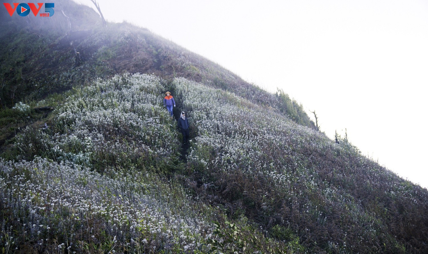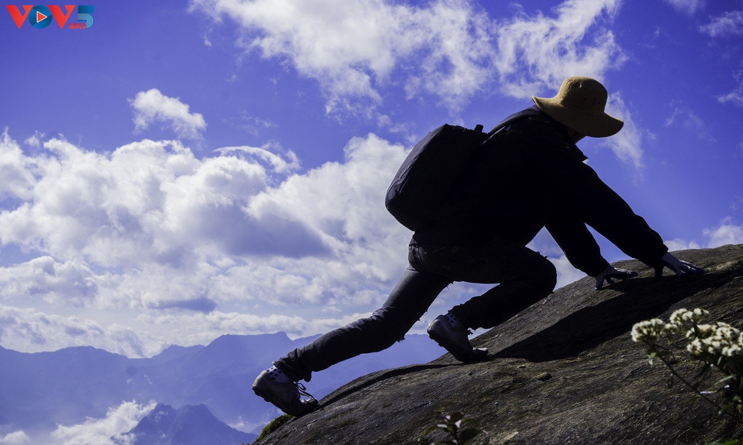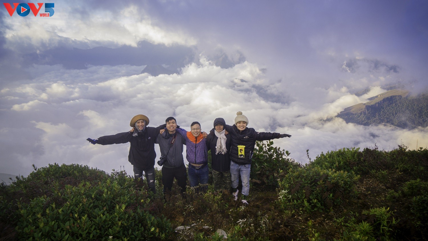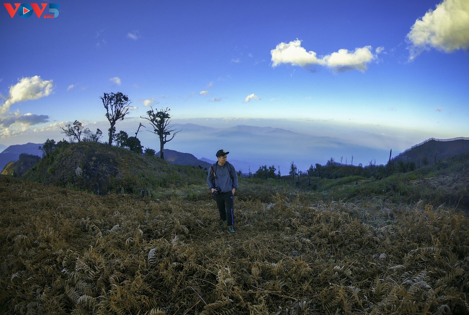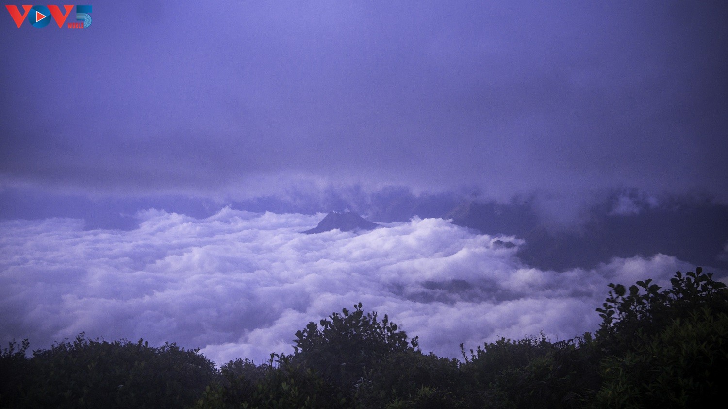 Tuy nhiên, Lảo Thẩn hấp dẫn nhất là vẻ đẹp của bình minh trên biển mây đại ngàn. Vì thế, chúng tôi bắt đầu từ lán leo tiếp lên đỉnh núi từ khoảng 4h30 sáng. Mất gần một tiếng để lên đỉnh, chờ những giọt ánh sáng đầu tiên của hừng đông và mặt trời dần lên. Tuy nhiên chúng tôi đã không gặp may vì gió lớn đưa mù che khuất biển mây và mặt trời. Tranh thủ từng khoảnh khắc để chụp biển mây ló ra từ những đợt mù liên tiếp kéo tới trong những cơn gió lạnh run rẩy.