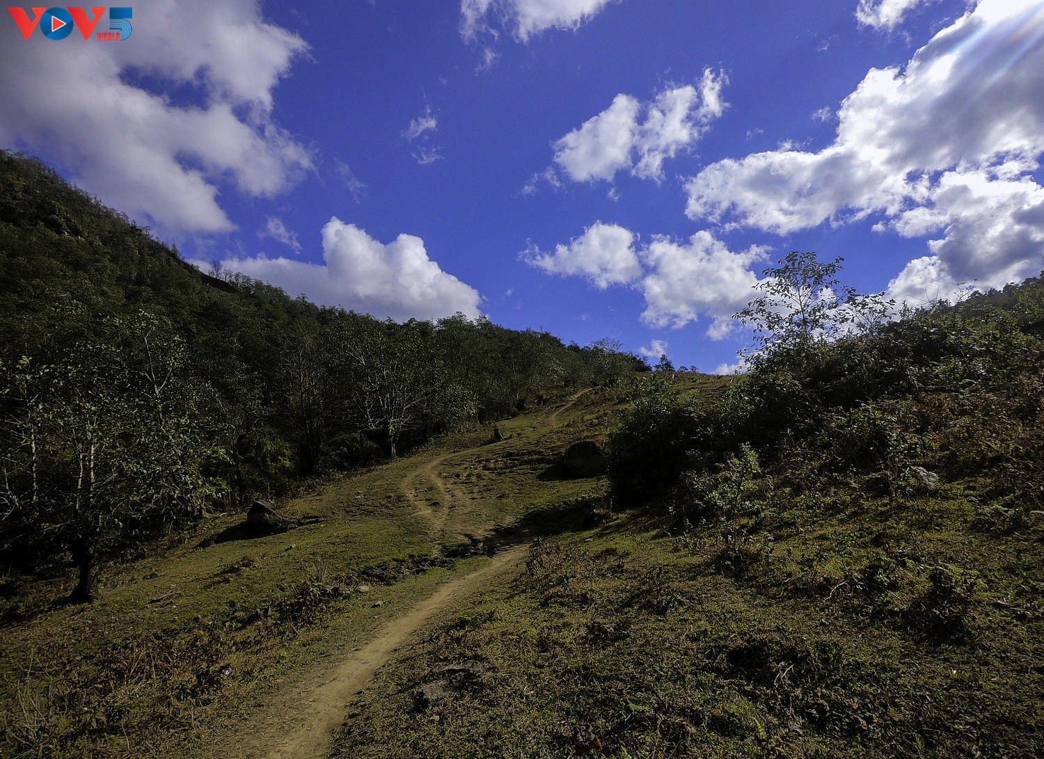 Những vạt nắng chiều làm khung cảnh rực rỡ mà cũng quạnh hiu. Từng mảng sáng trên nền trời xanh ngắt, cỏ úa vàng vương vấn cùng bước chân lữ khách. Những cây rừng khô cằn còn sót lại cắt hình trên nền trời, hòa cùng gió thốc giữa không gian kỳ vĩ, tĩnh lặng tạo nên vẻ đẹp đầy Liêu Trai, cổ kính. Cảm giác về miền biên viễn, nỗi hoang liêu, tịch mịch thật rõ rệt.