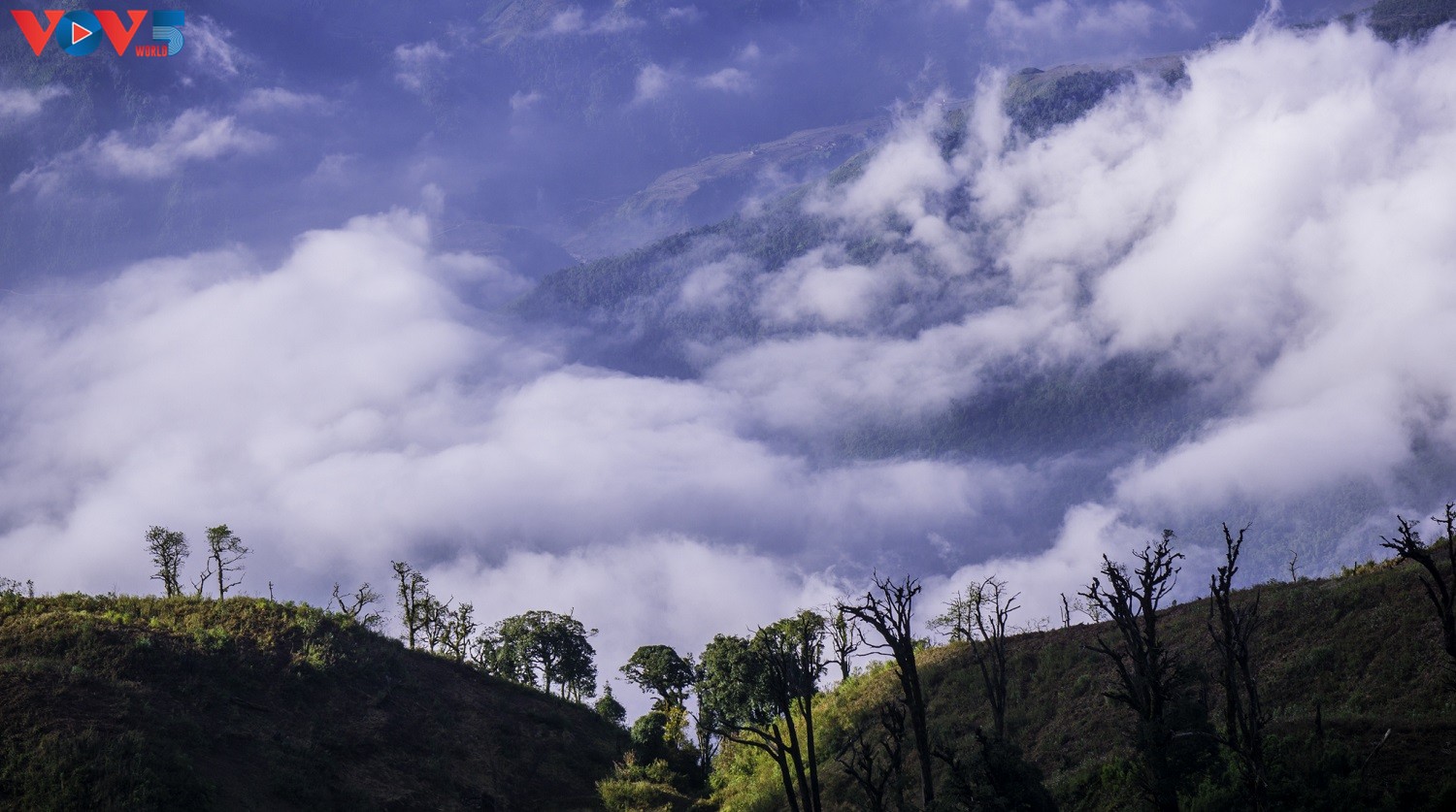 Gặp bình minh trên biển mây Lảo Thẩn là lý tưởng và cần nhiều sự may mắn. Tuy nhiên, dẫu không gặp biển mây thì cung đường trekking đầy mây bay, hoa nở cũng đủ làm say đắm lòng người. Mây vờn, ôm núi, núi mờ trong mây gợi lên nét bảng lảng, quyến rũ đặc biệt của núi rừng Tây Bắc. Khung cảnh này nói theo ngôn ngữ của Nguyễn Tuân là “hoang dại như tiền sử”, “hồn nhiên như nỗi niềm cổ tích tuổi xưa".