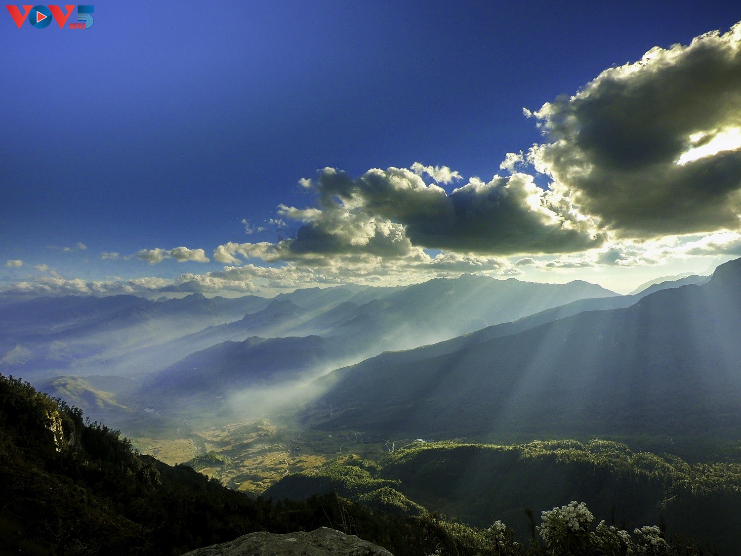Lảo Thẩn trong một chiều nắng rực rỡ, những ánh nắng chiều xuyên mây tạo nên vạt ray sáng lung linh, huyền ảo. Ray nắng trên nền rúi rừng, trời đất, hoa cỏ tạo nên một bữa tiệc của ánh sáng, đẹp như cõi mộng, cõi tiên. Trước khoảnh khắc hiếm có của thiên nhiên, mỗi người đều ngây ngất ngắm nhìn, tận hưởng.