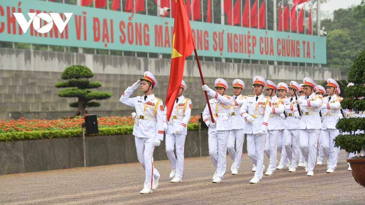 Lễ chào cờ do cán bộ, chiến sĩ Bộ Tư lệnh Bảo vệ Lăng Chủ tịch Hồ Chí Minh thực hiện. |