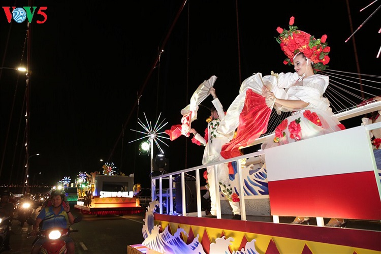 Tại hai điểm dừng chân trước trụ sở HĐND TP Đà Nẵng trên đường Bạch Đằng và công viên Biển Đông, các vũ công đã trình diễn những tiết mục nghệ thuật đặc trưng của mỗi quốc gia. |