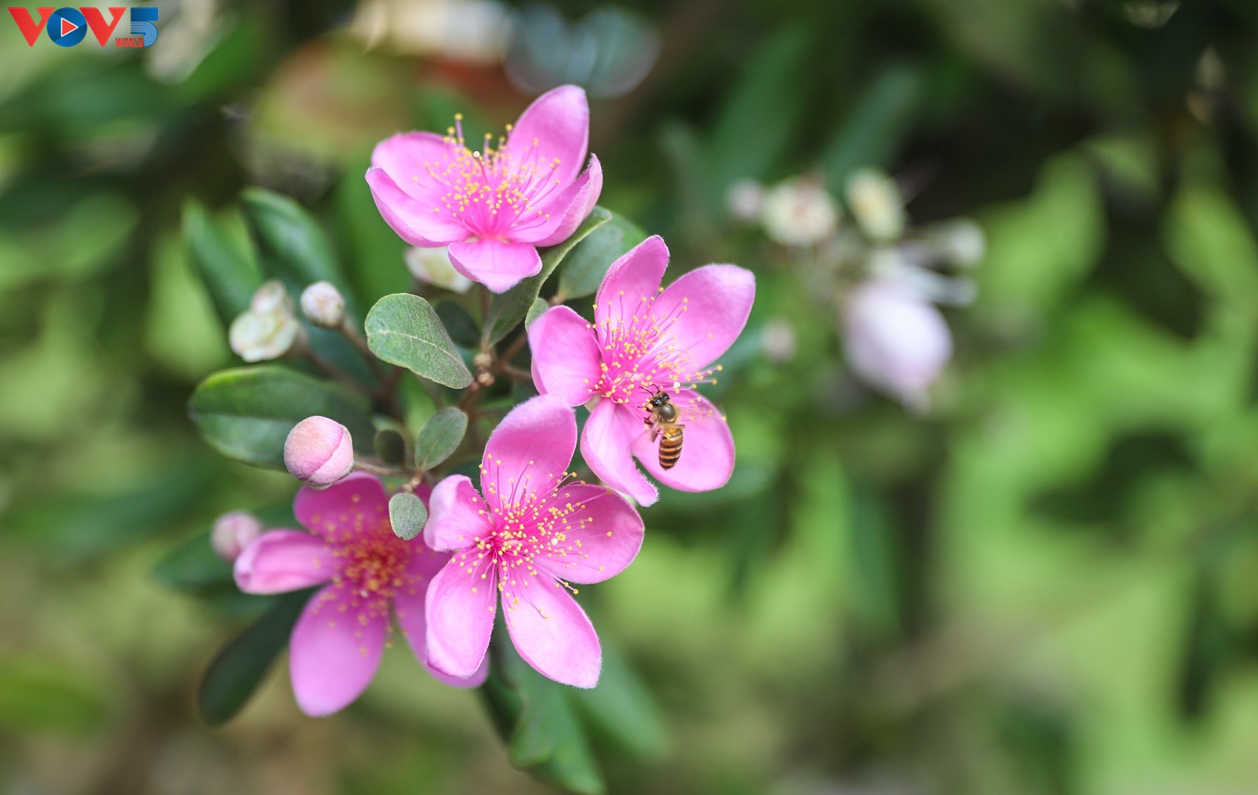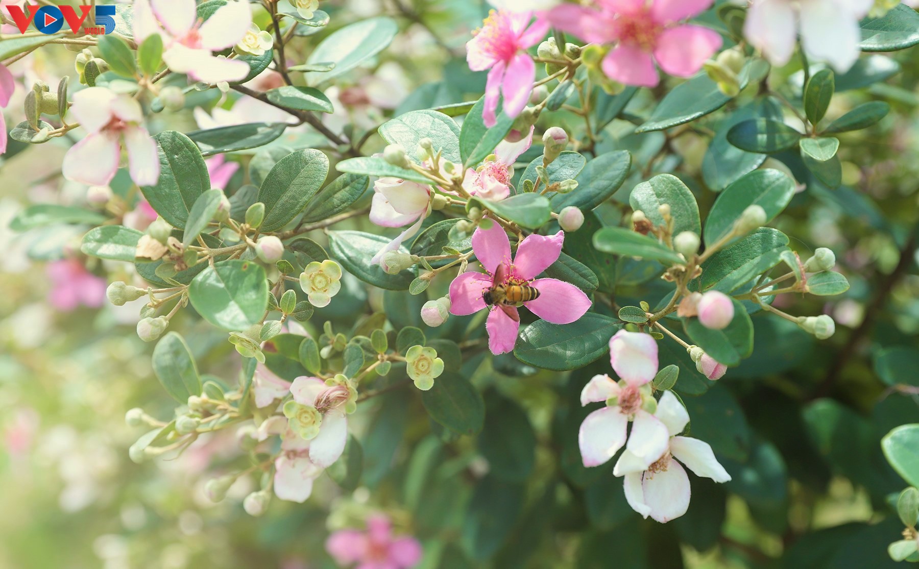 Hoa sim có vẻ đẹp giản dị nhưng thơ mộng nhờ sắc tím pha ánh hồng, 5 cánh bao nhị vàng ươm. Cây sim thân nhỏ mọc thành từng bụi, vốn quen thuộc ở nhiều vùng đồi núi nước ta. |