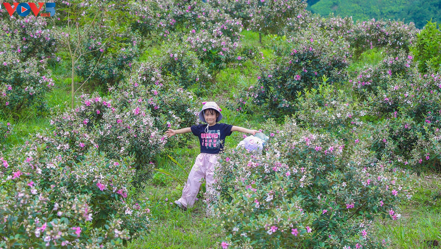 Hoa sim đồng loạt nở dưới nắng tạo nên vẻ đẹp mộc mạc, mộng mơ. Chị Sằn Móc Lộc, người trồng sim cho biết, hàng nghìn gốc sim này gia đình trồng từ đầu năm 2023, tuy nhiên đây là mùa hè đầu tiên hoa sim nở, bông lớn dày đẹp nhờ việc chăm bón cẩn thận. |