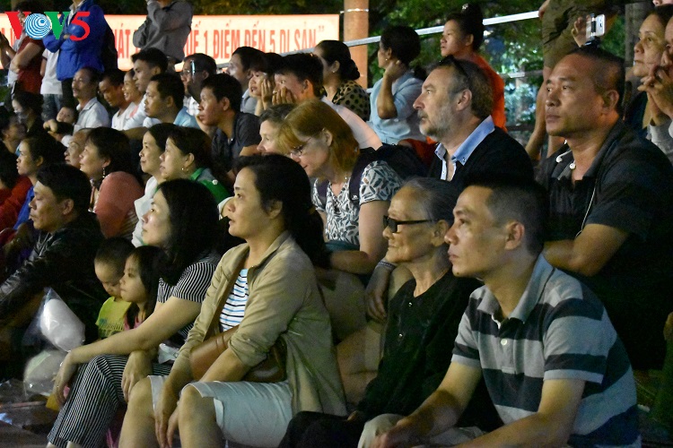Khán giả ngồi kín các hàng ghế để được xem những màn biểu diễn thú vị của các đoàn nghệ thuật.