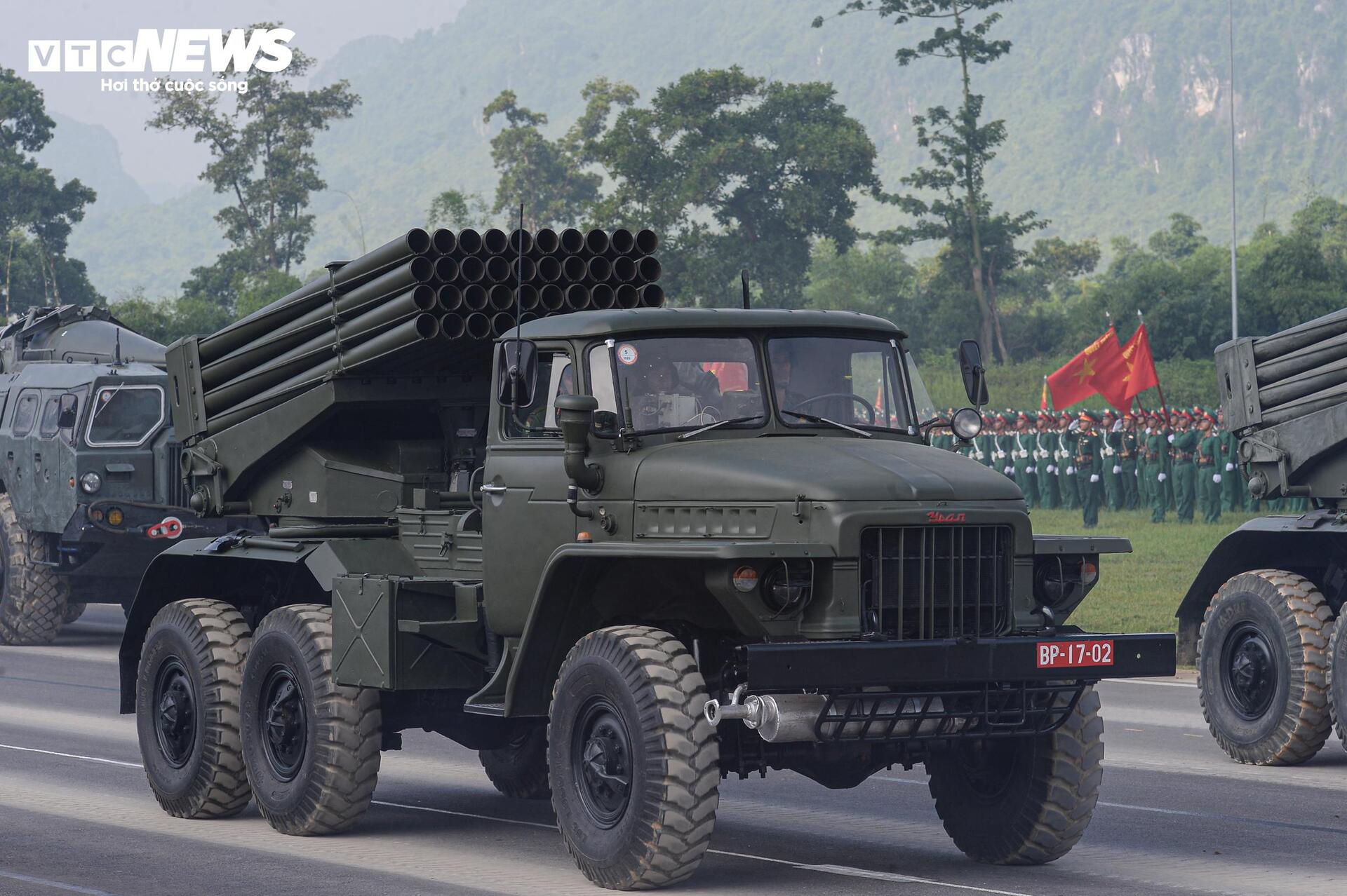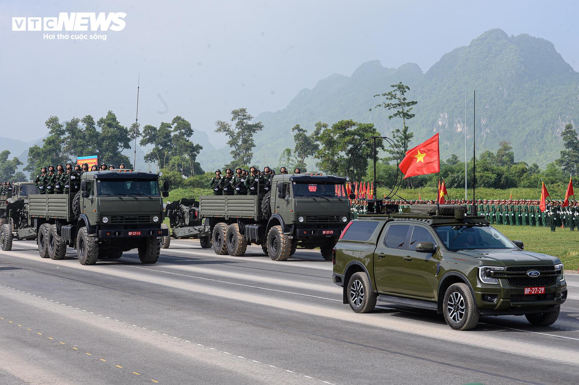 | Khối xe pháo cũng là điểm nhấn nổi bật trong buổi hợp luyện khi hội tụ nhiều loại khí tài uy lực. |