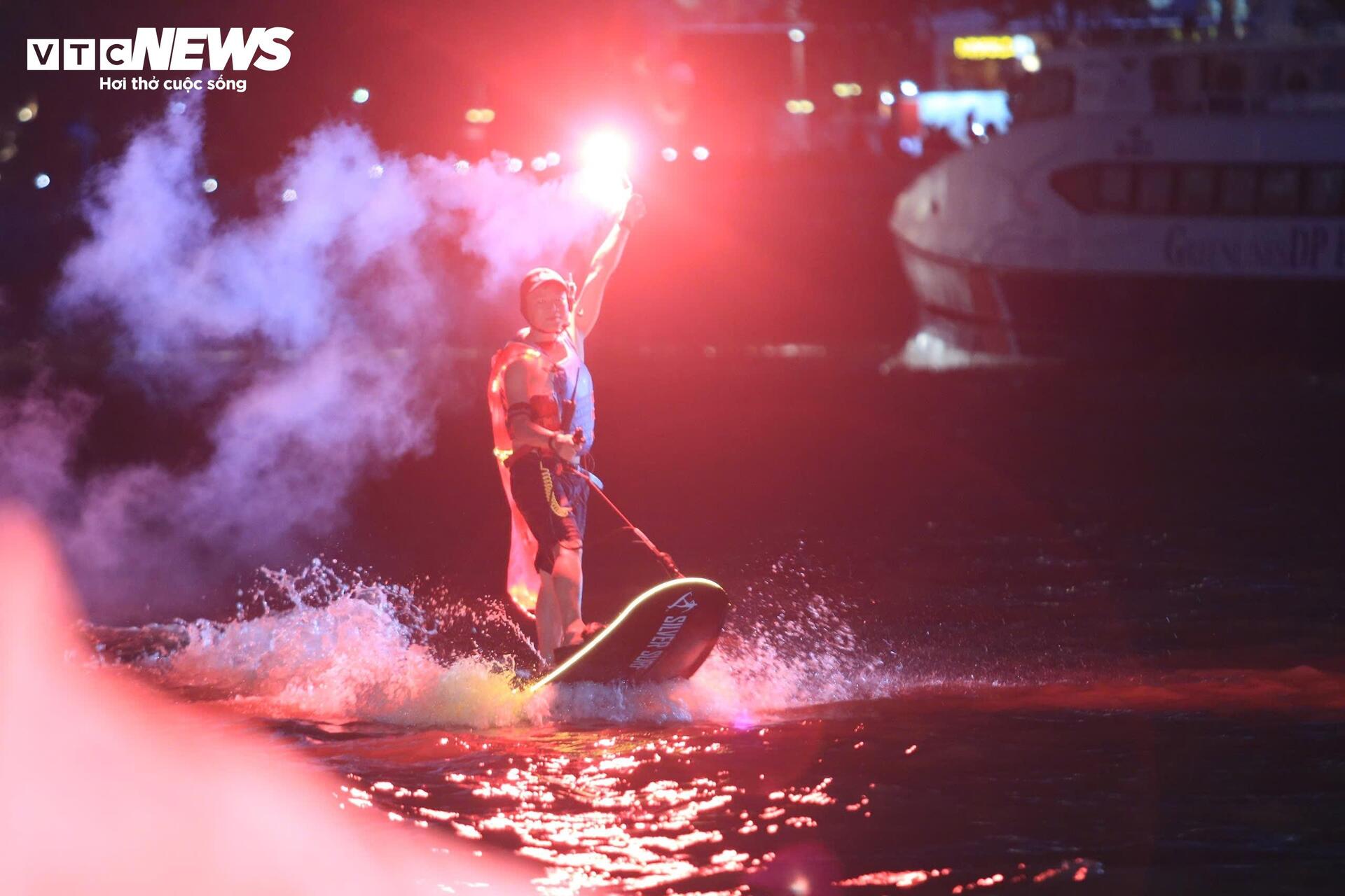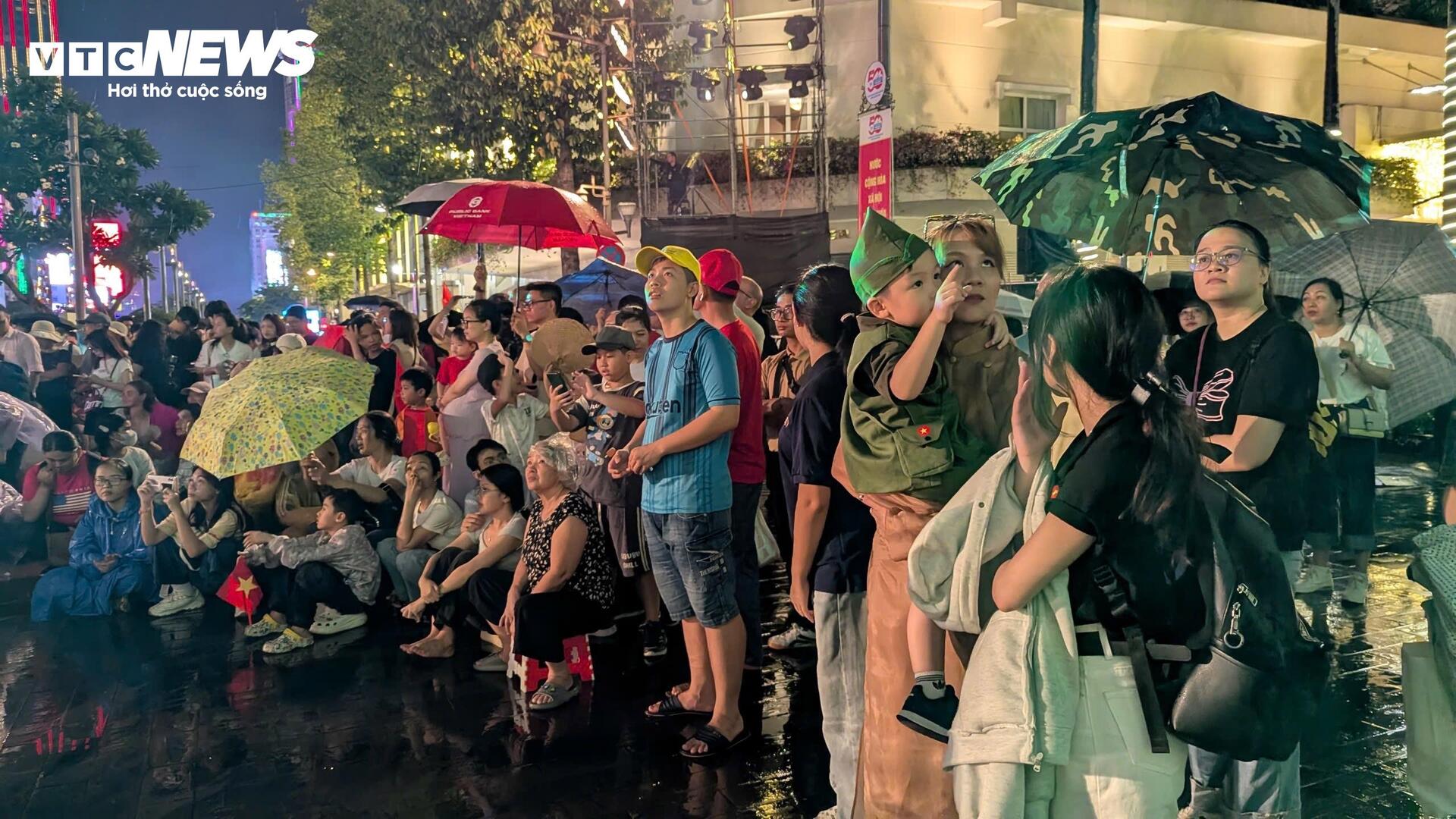 Đường Đồng Khởi và các tuyến phố trung tâm TP. Hồ Chí Minh cũng chật kín người. Nhiều bạn trẻ chọn các quán cà phê ven sông hoặc đứng dọc bờ kè để có tầm nhìn tốt nhất. |