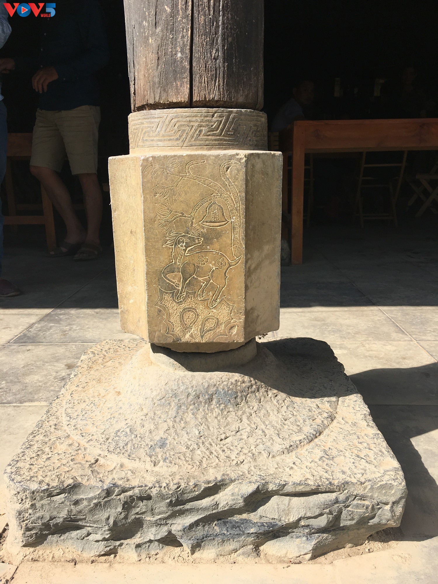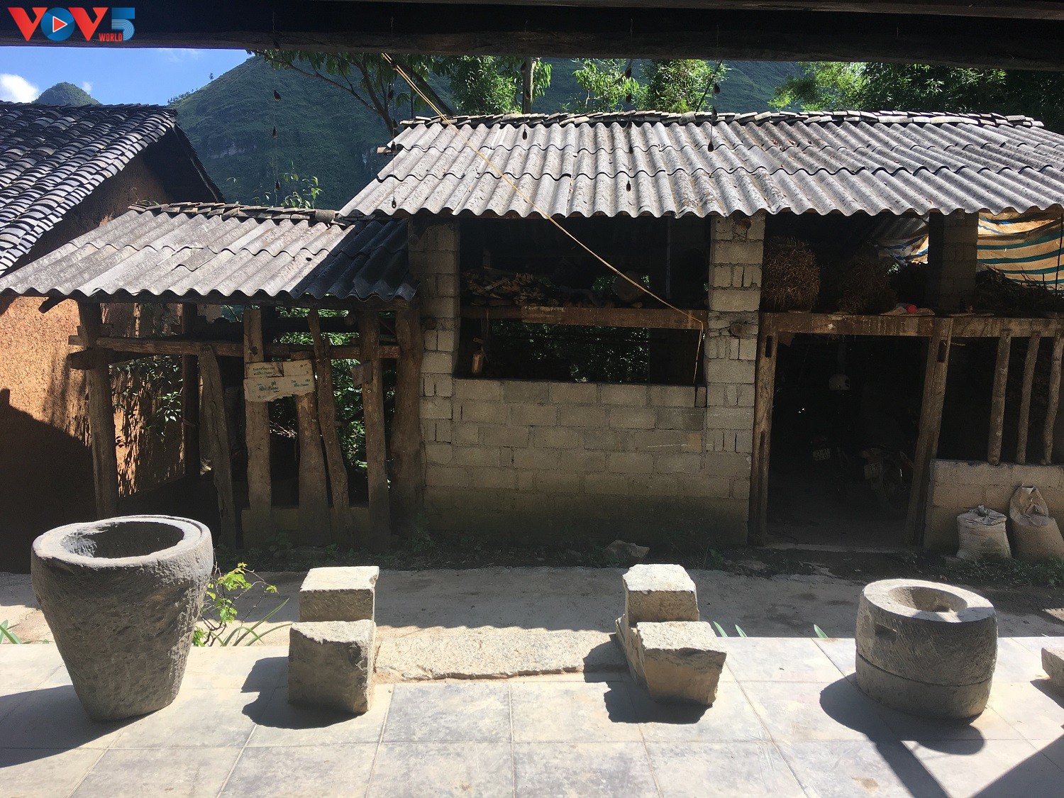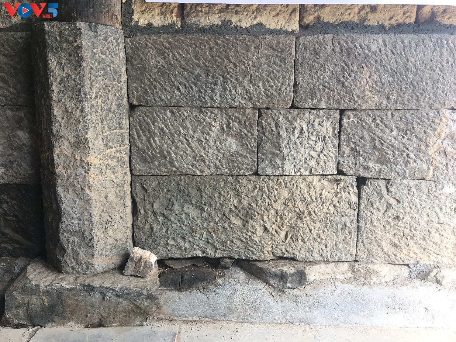 Chân tường của ngôi nhà được làm bằng 160 khối đá xanh lớn, được người dân khai thác cách đó hơn 20km. Trước kia, để đẽo gọt được một viên đá có kích thước cao 35cm, dài 60cm, một người thợ phải làm liên tục trong nhiều ngày.
