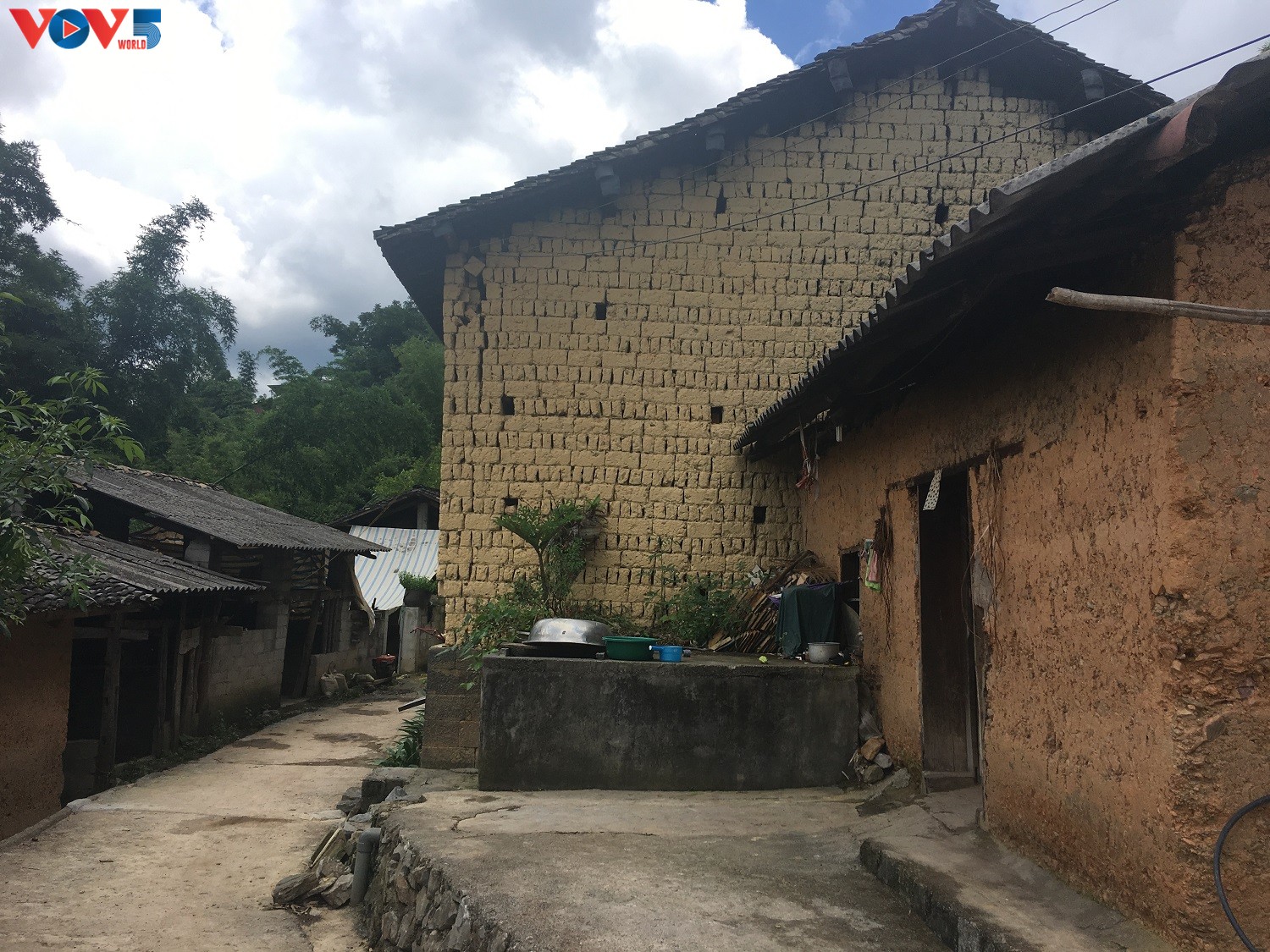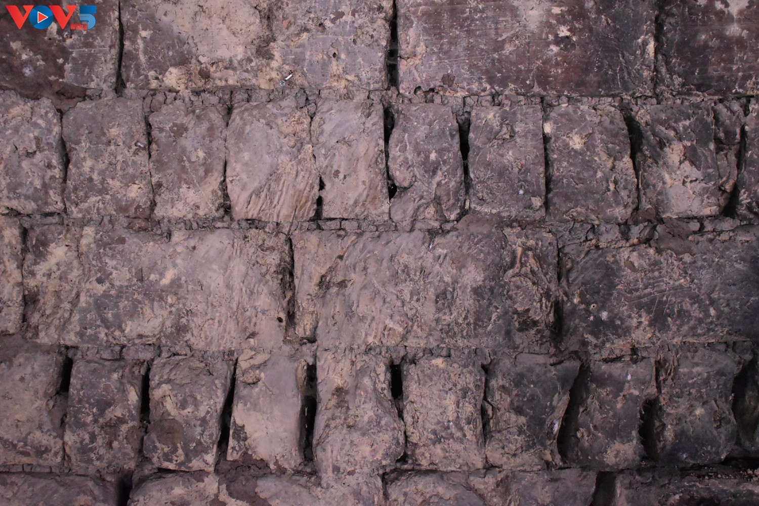 Tường nhà được xây bằng gạch. Những viên gạch kết dính nhau bằng một thứ keo được làm bằng mật mía và phân trâu.