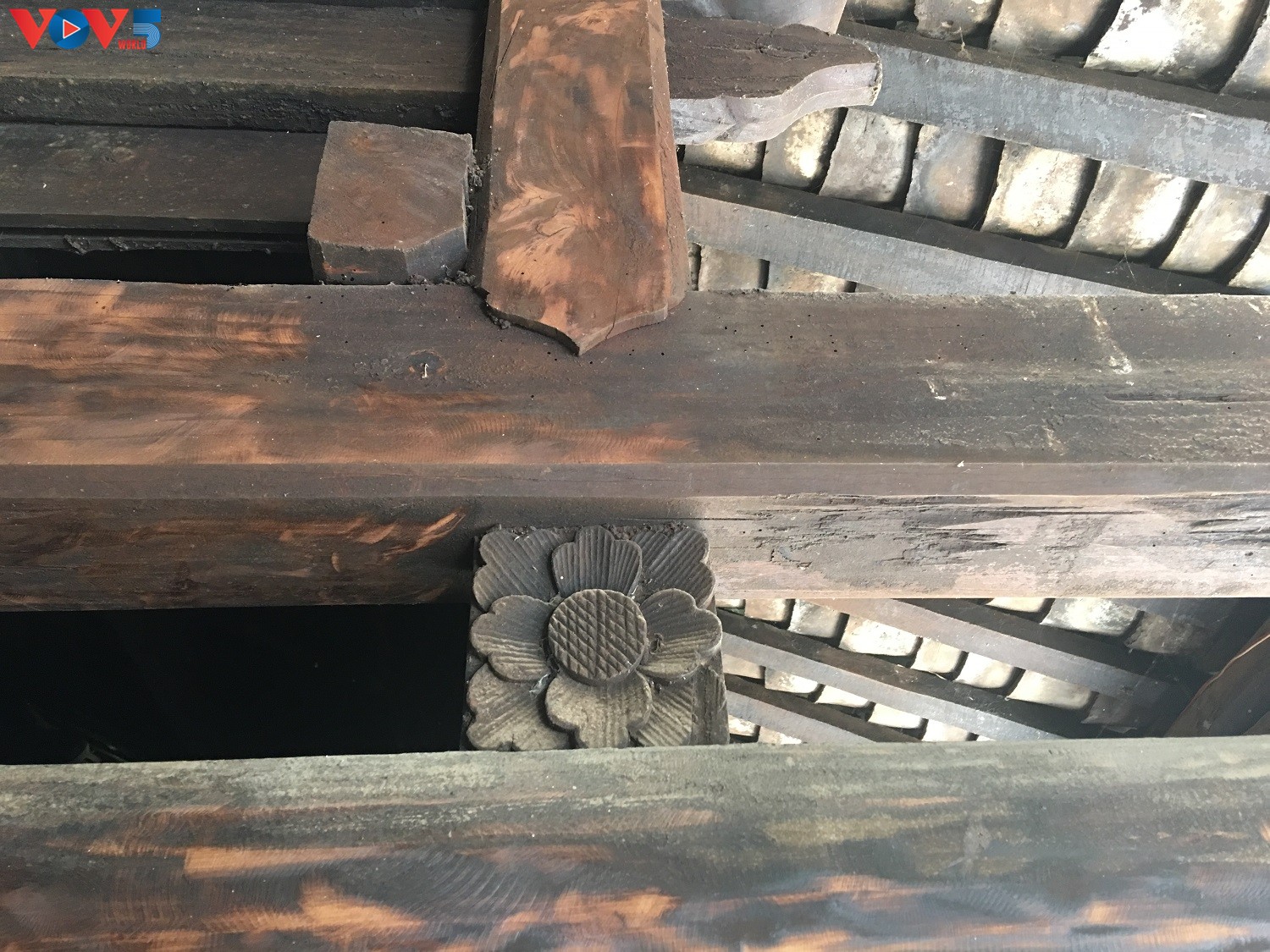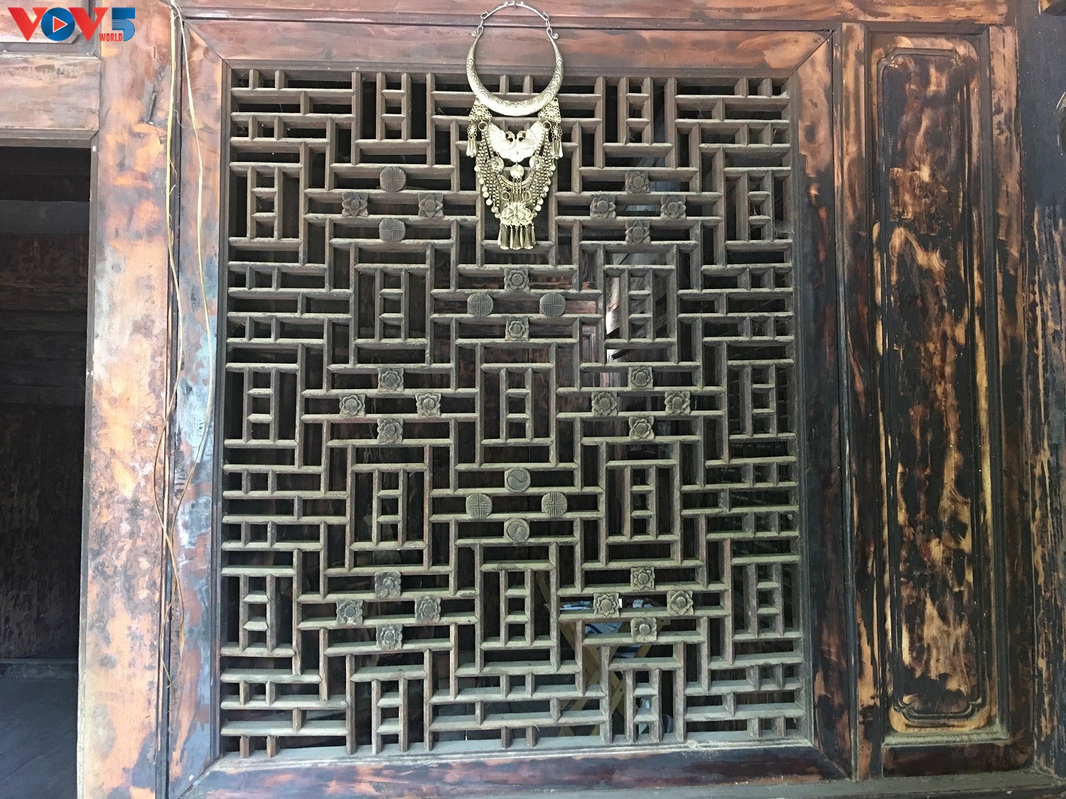 Ngoài vật liệu đá, gạch thì ngôi nhà cổ này còn được làm bằng nhiều loại gỗ quý như gỗ thông đỏ, thông đá và gỗ nghiến. Trong ngôi nhà có nhiều ô cửa sổ nan trám được tô điểm bằng nhiều hoa văn.