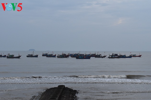 Từng đoàn thuyền nối đuôi nhau cập bến đưa hải sản vào đất liền.