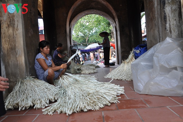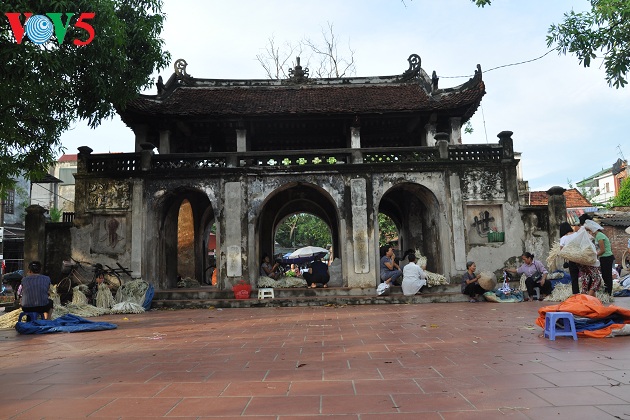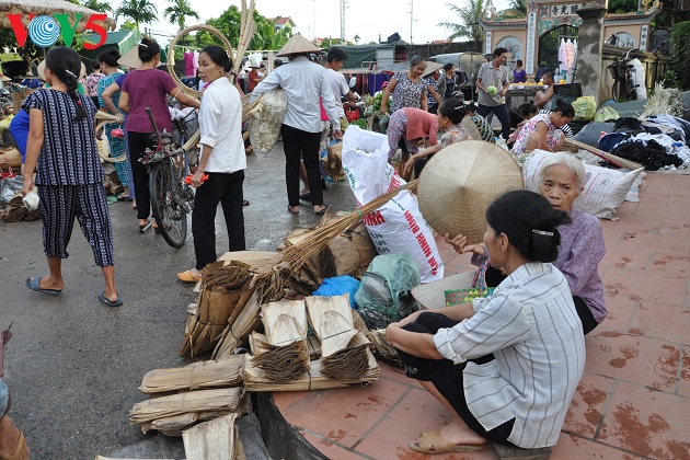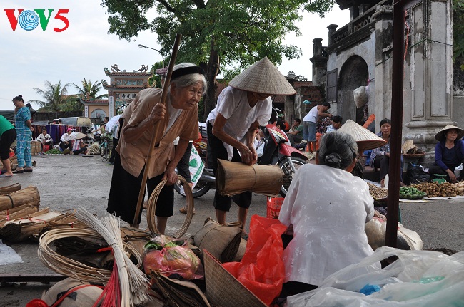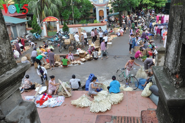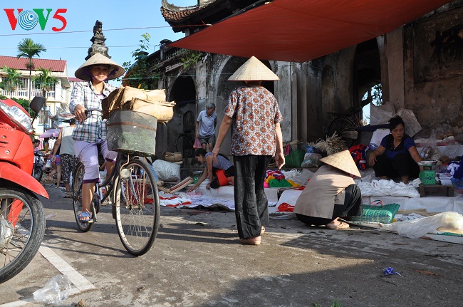 Chợ nón làng Chuông ngay tại sân chùa làng, tạo nên nét duyên dáng cổ kính và mộc mạc đậm chất thôn dã Việt Nam.
