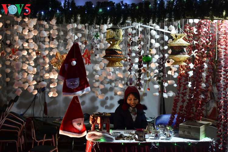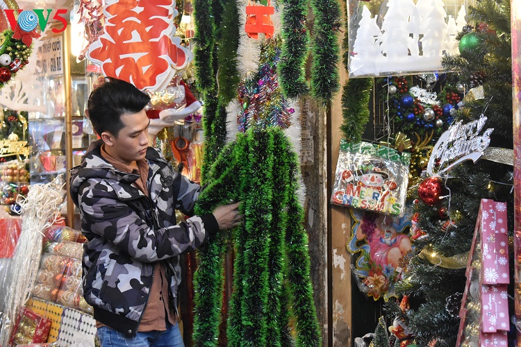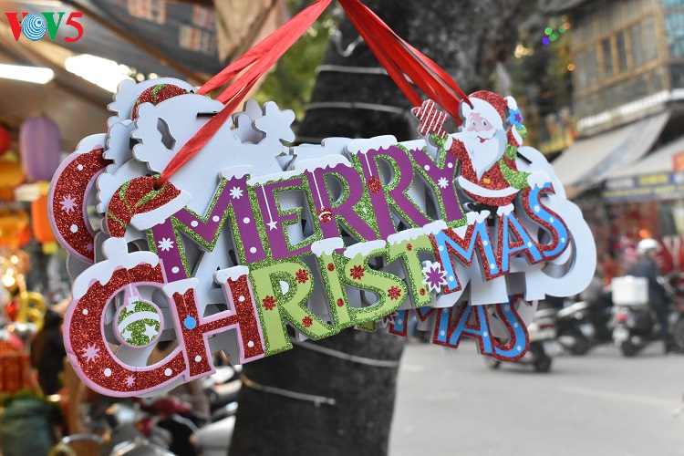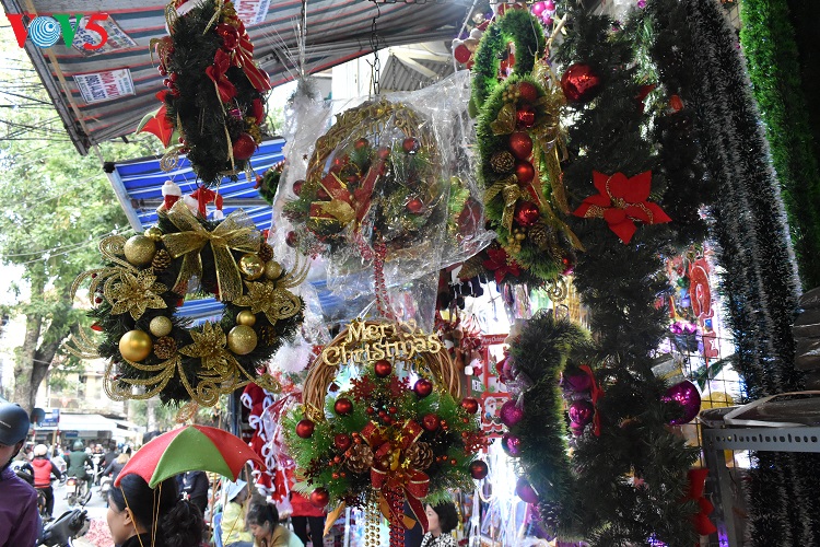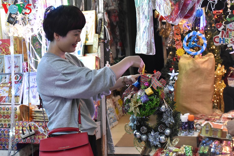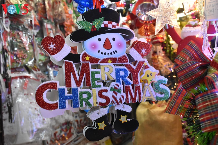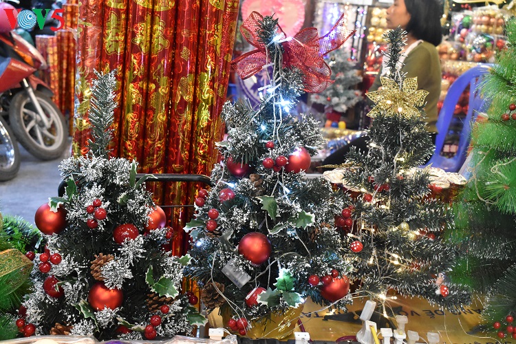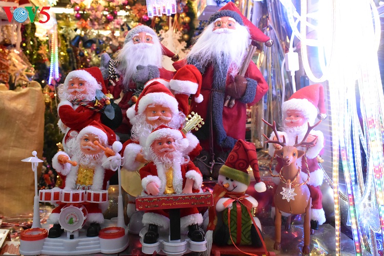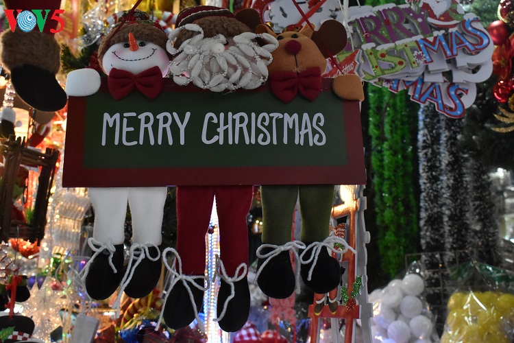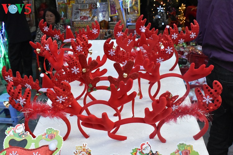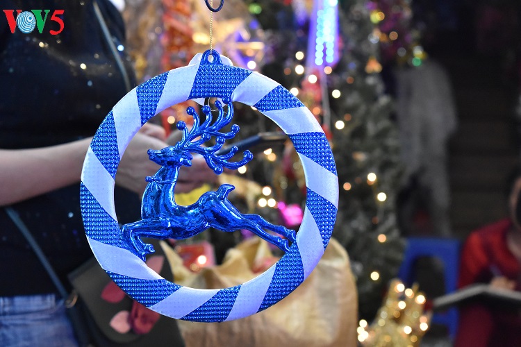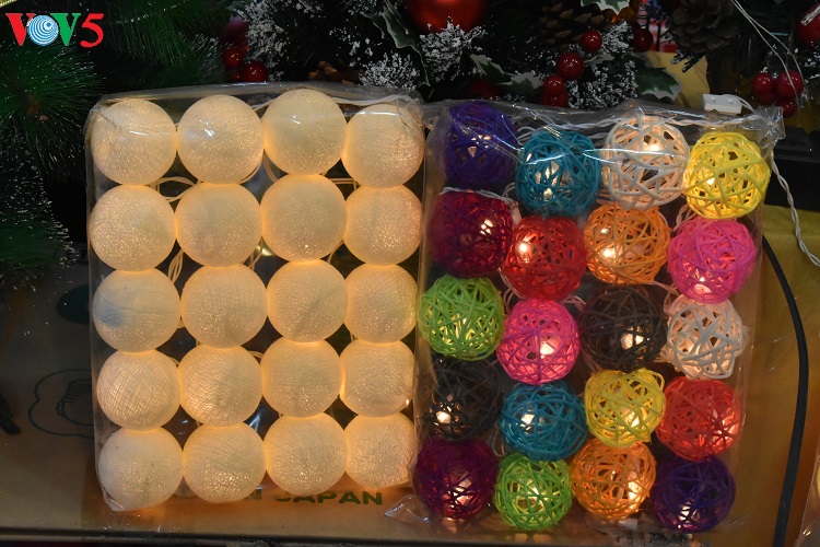 Các mặt hàng trang trí Noel năm nay đa dạng, phong phú, màu sắc rất "bắt mắt" thu hút sự quan tâm của khách hàng. |