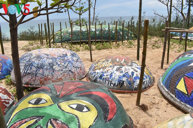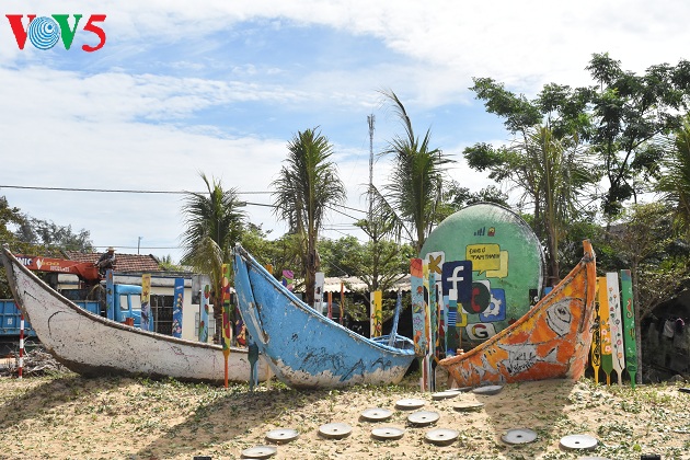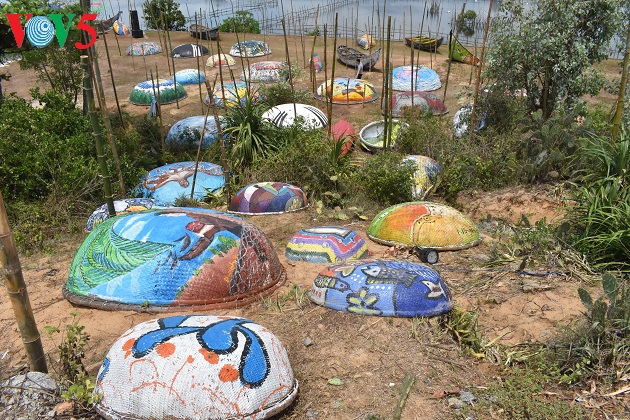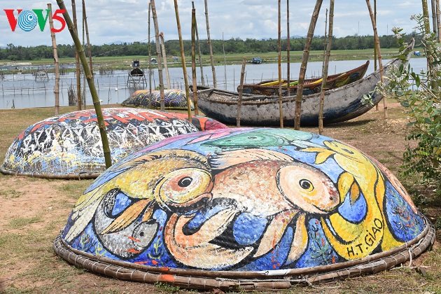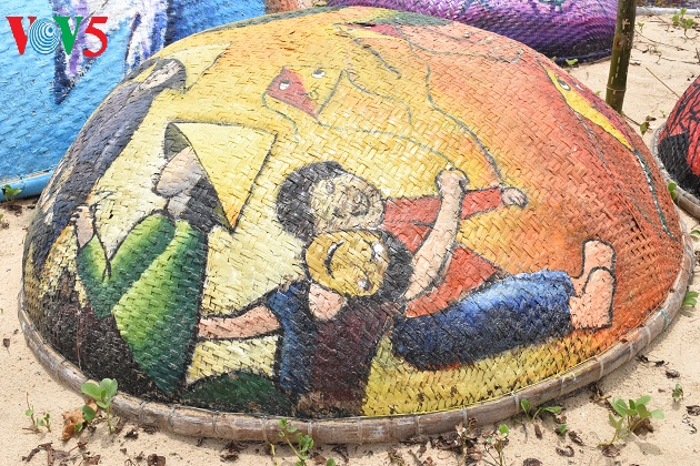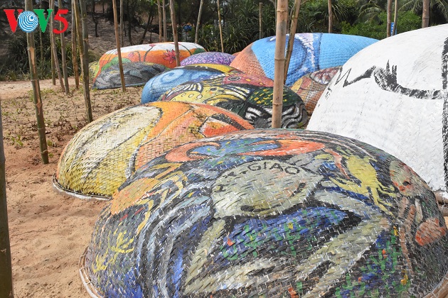 Những tác phẩm sinh động được vẽ trên những chiếc thuyền thúng đã hỏng và bỏ đi.