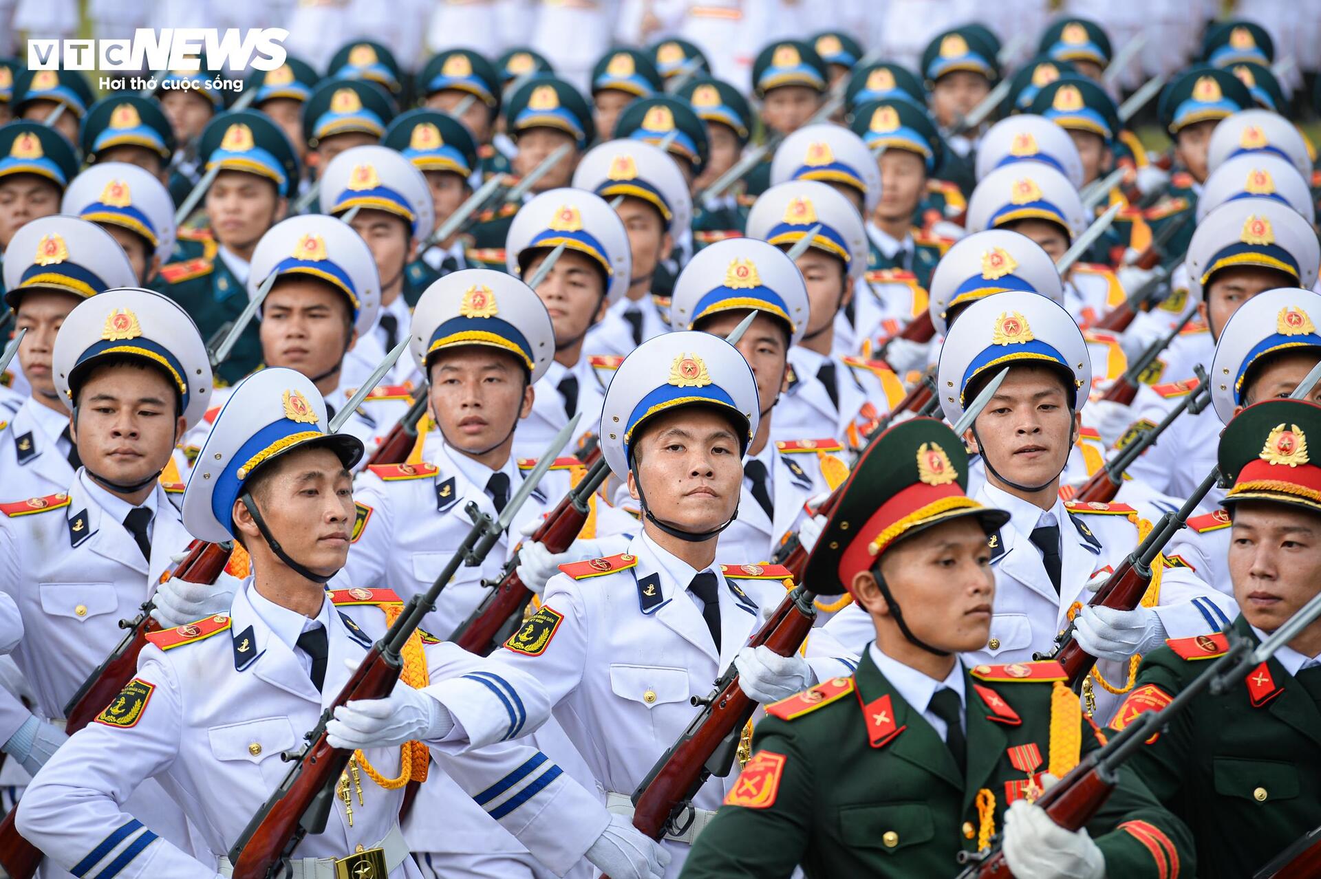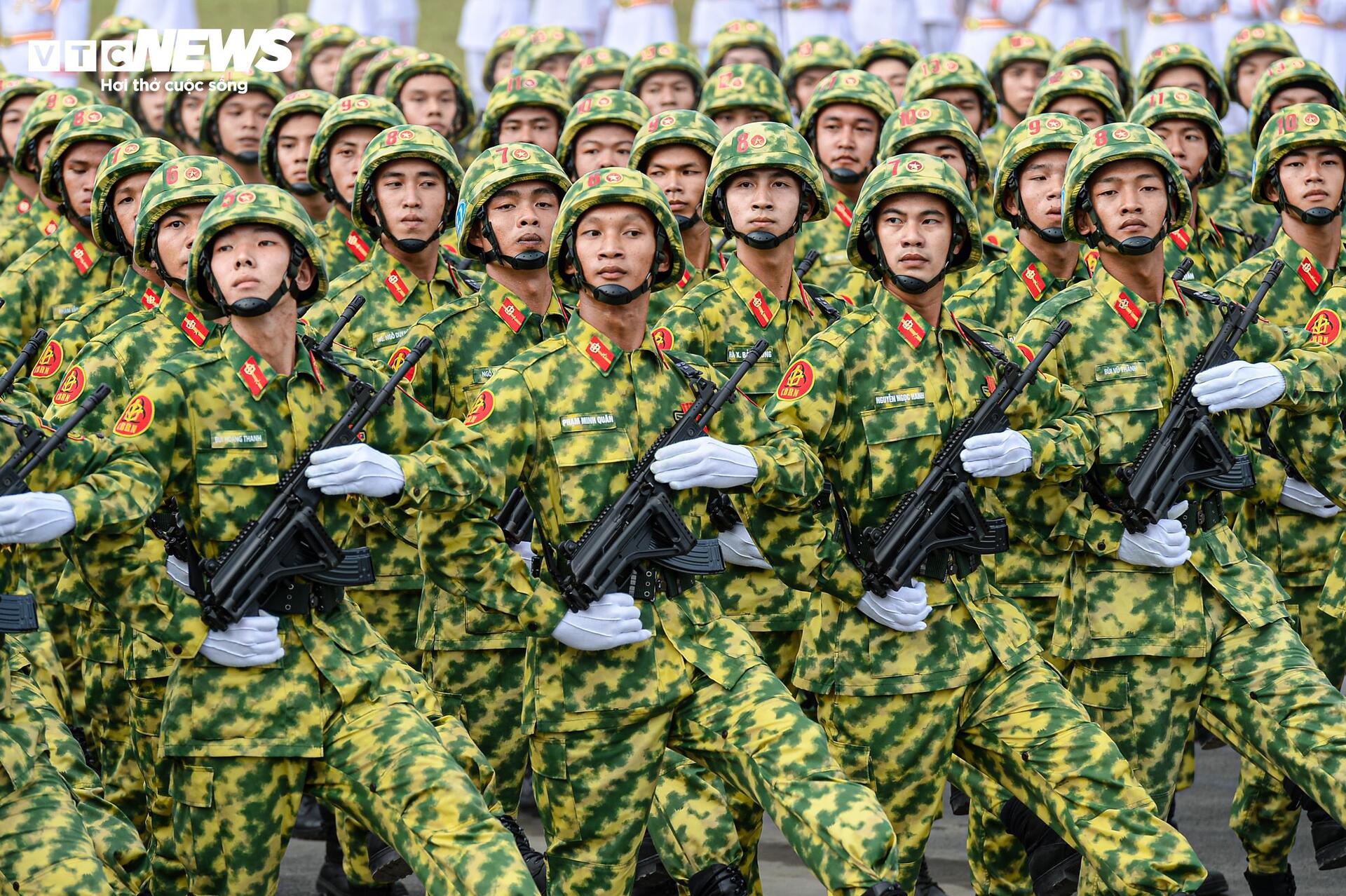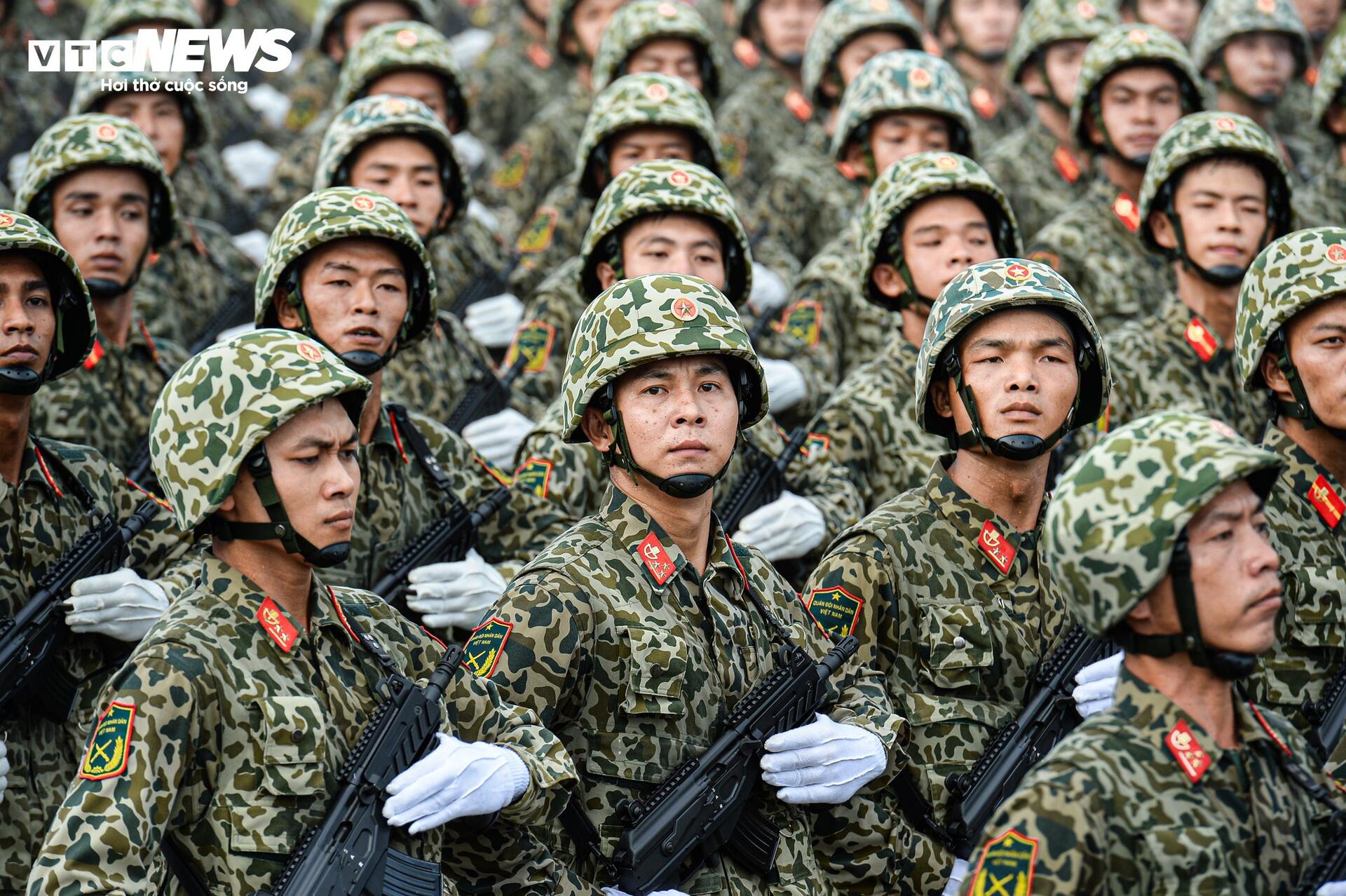| Hình ảnh các khối diễu binh diễu hành của lực lượng Quân đội nhân dân đi qua lễ đài. |