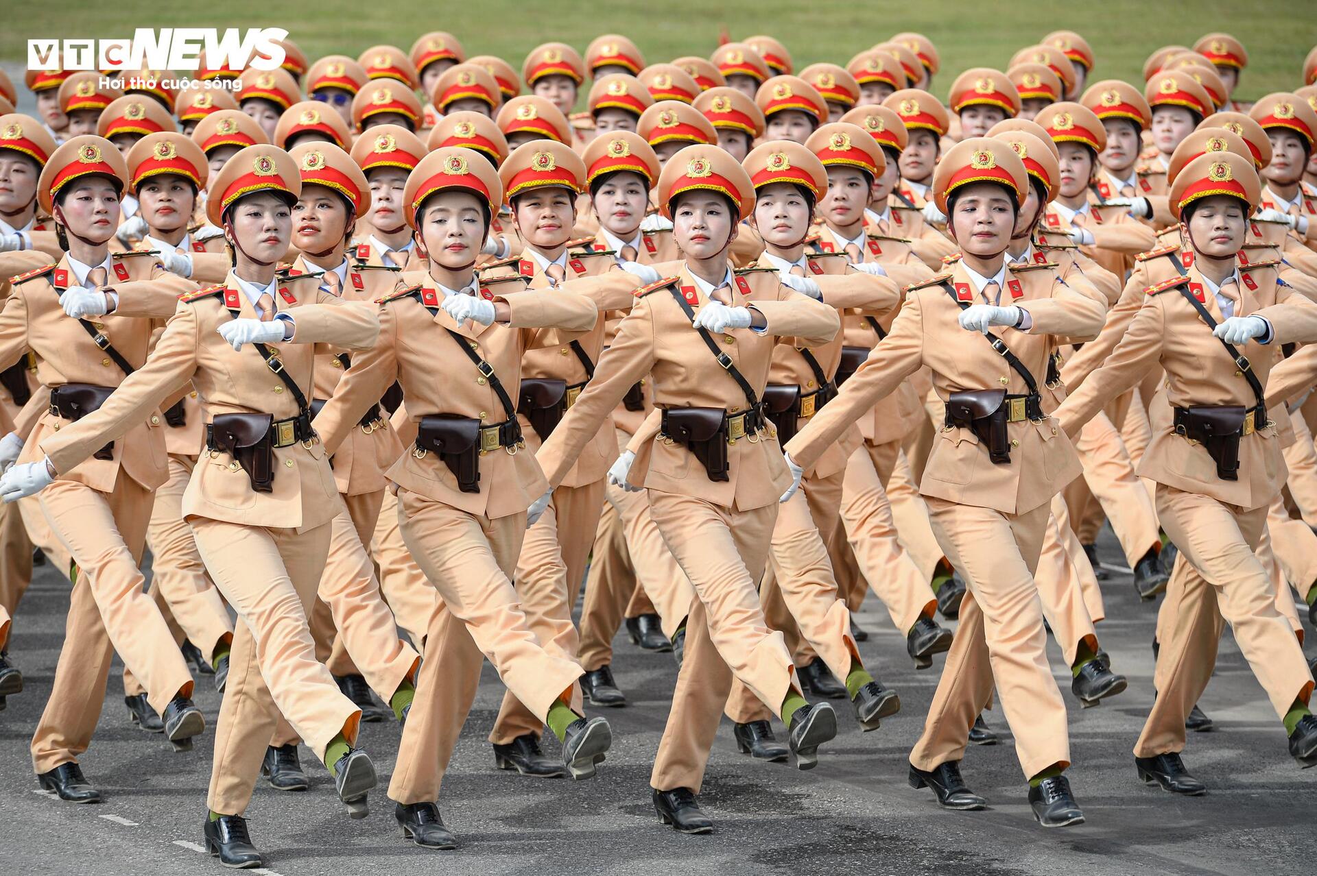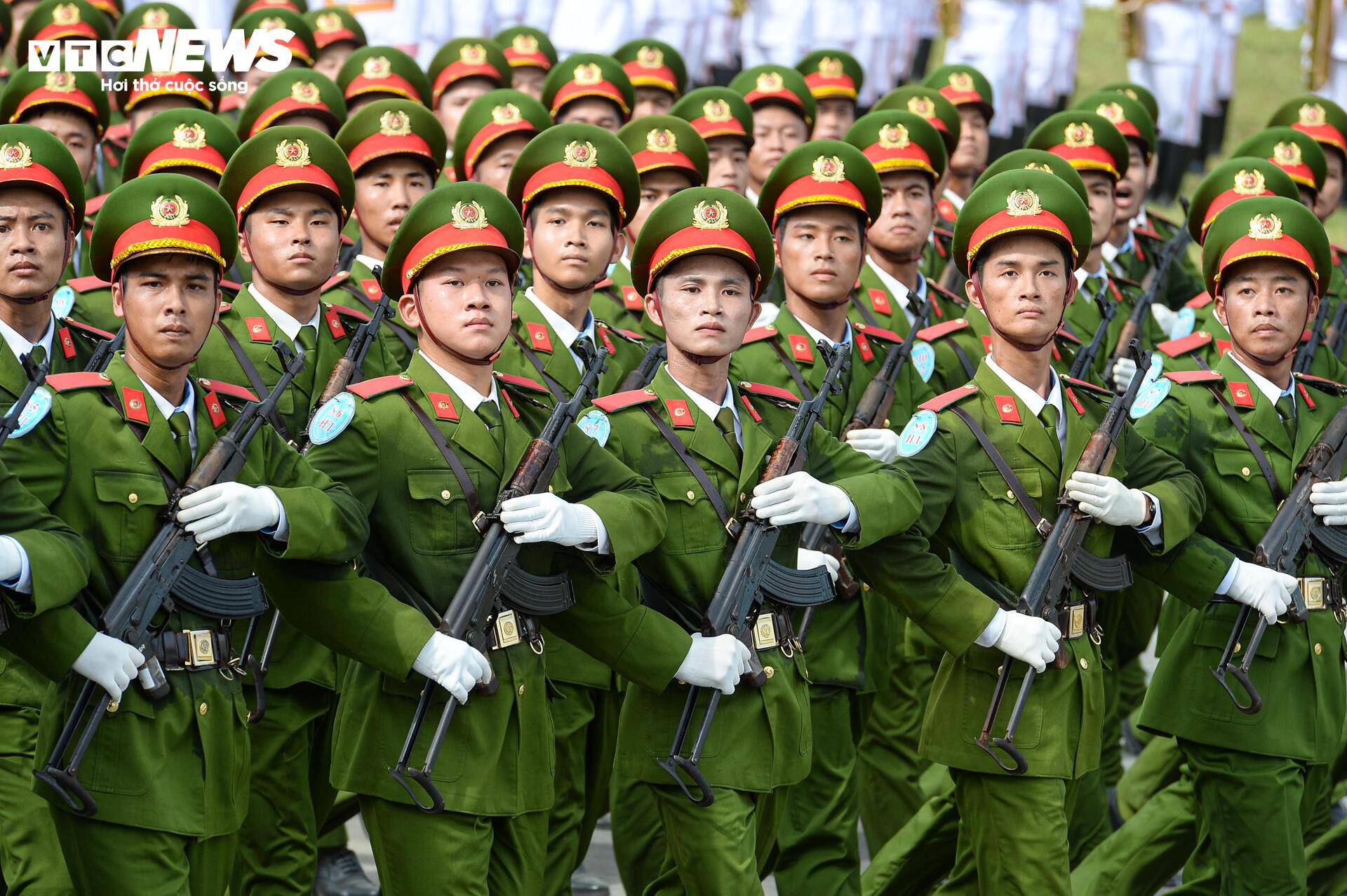 | Hình ảnh các khối diễu binh, diễu hành của lực lượng Công an nhân dân diễu binh qua lễ đài trong buổi tổng hợp luyện ngày 5/8. |